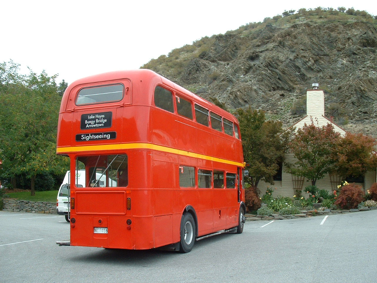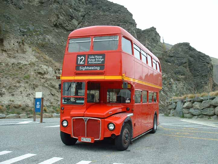 Queenstown on the South Island of New Zealand is a prime tourist location. Local service bus operator, Connectabus provide a Routemaster for a daily tour of the area's attractions. It is seen here at its first stop at one of the most famous bungy jump sites from a bridge over a canyon.