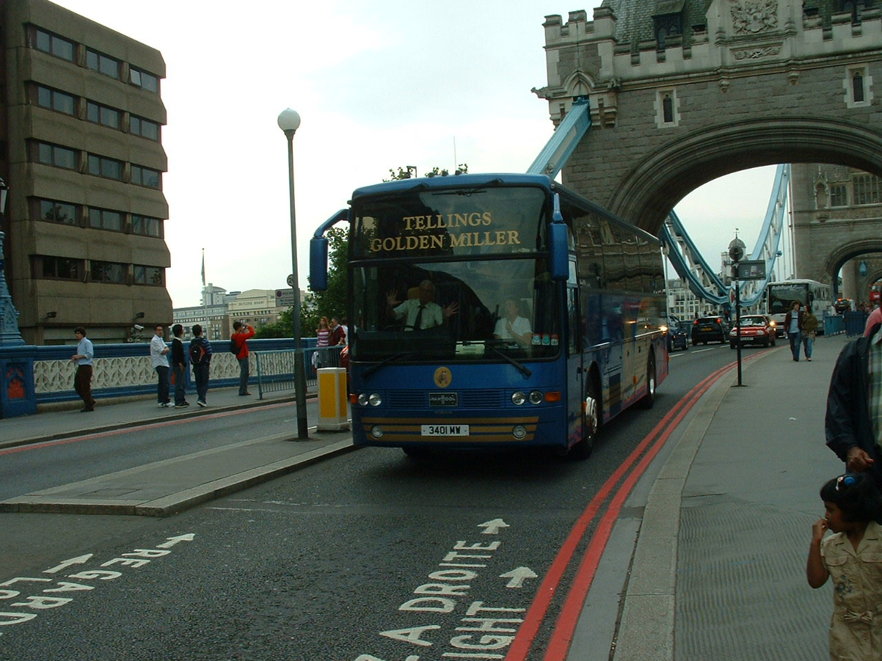 Pride of the fleet in 2002 was this 1997 Van Hool bodied Volvo B10M in "Gold Service" livery. The coach is seen in central London in December 2002.
