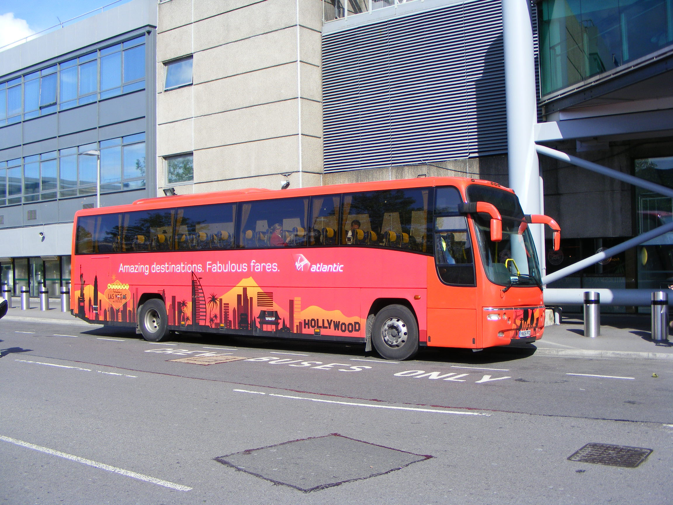 Ad agencies are getting more adventurous with their use of vinyl wraps on vehicles as this view of TGM's KX61JVP shows. The Plaxton Panther bodied Volvo B9R is on layover in Heathrow's perimeter coach ramp in September 2013.
