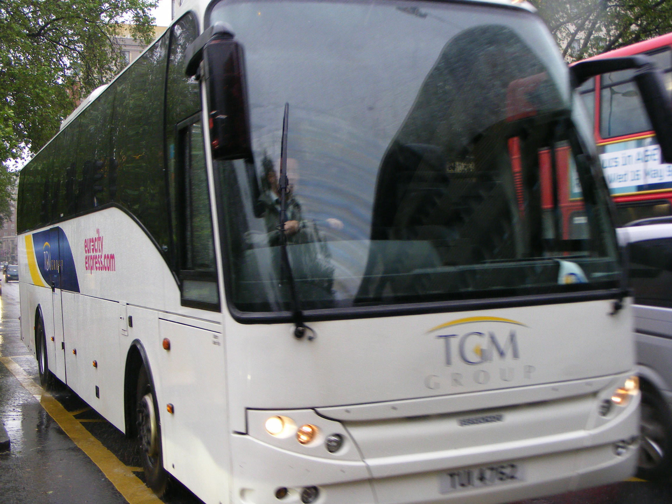 Seen the previous month on an equally wet day is TUI4762, a Berkhof Axial bodied coach branded for eurocity express.com which suggests this could be Scania K340EB YN06CJV re-registered.