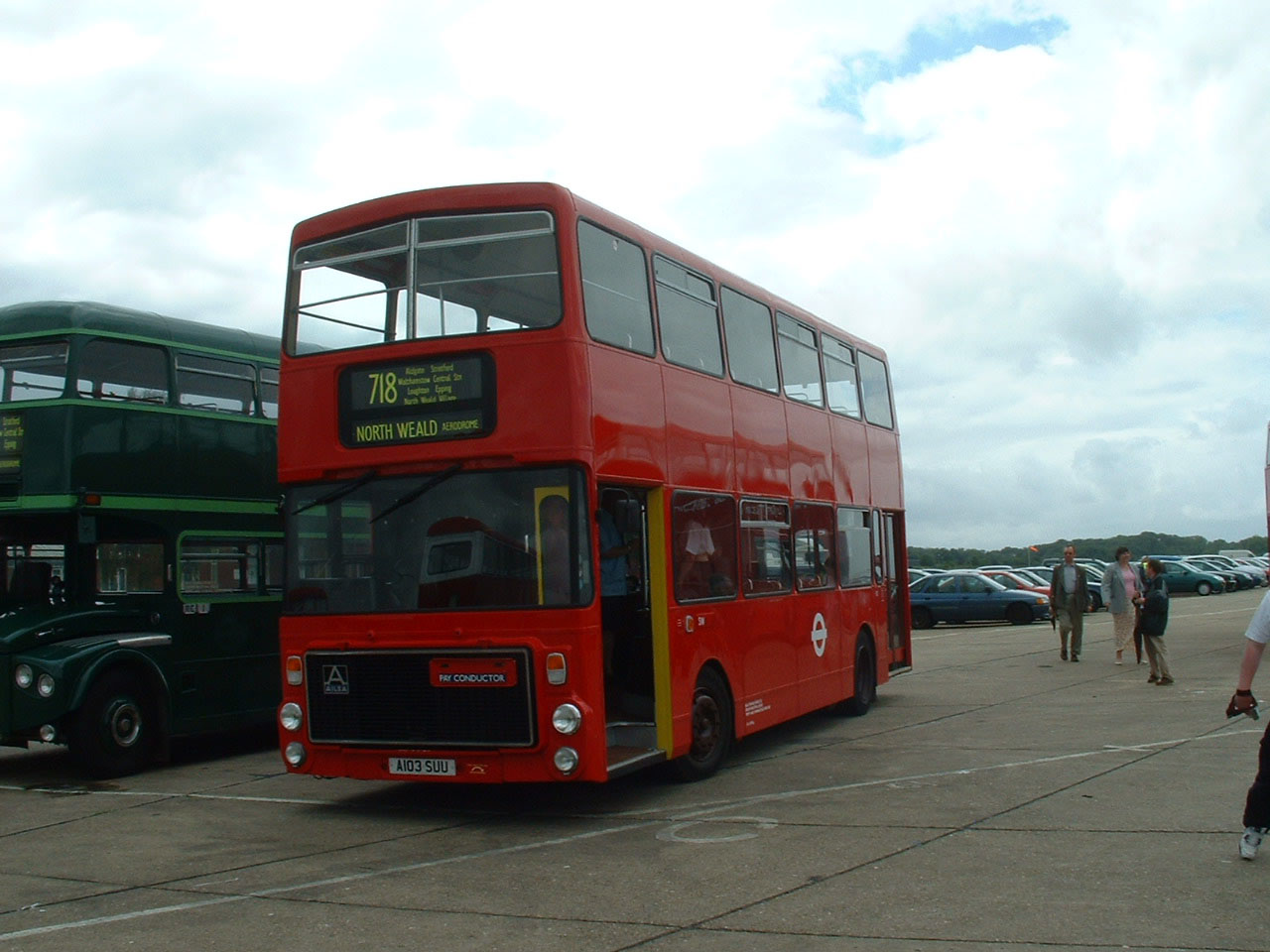 Here is V1 on display that afternoon with Harpurs ex Dublin Alexander ALX400 bodied Volvo B7TL, X424PFE, originally AV13 (00-D-70113). Also visible are Midland Classic's Scania Omnidekka 55 (TFA13) in commemorative Stevensons livery and former Lothian Buses Plaxton President bodied Dennis Trident 606 (SN51AXO) sold to Ipswich Buses as their 24.