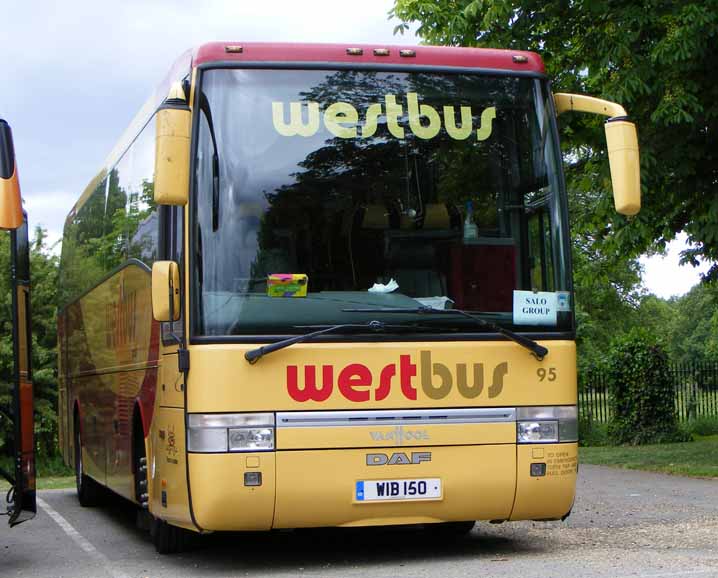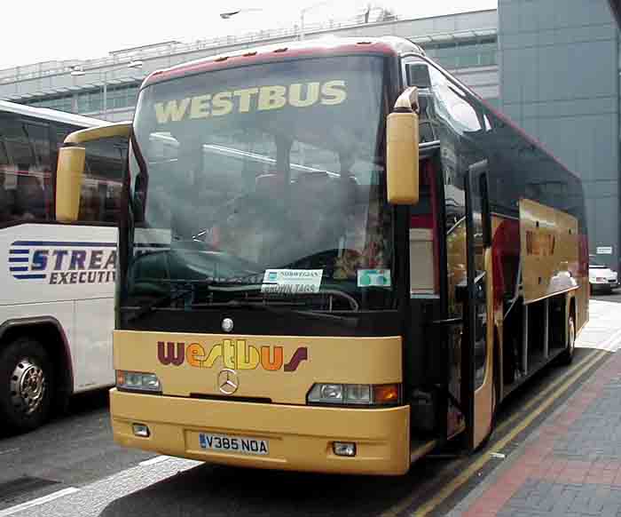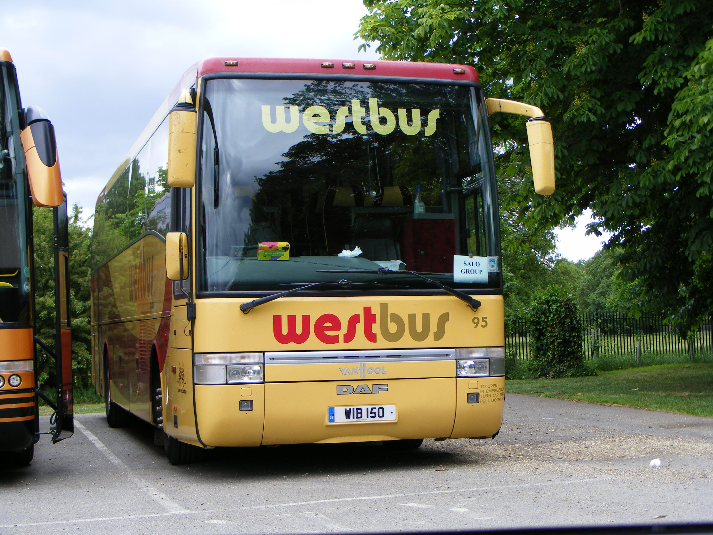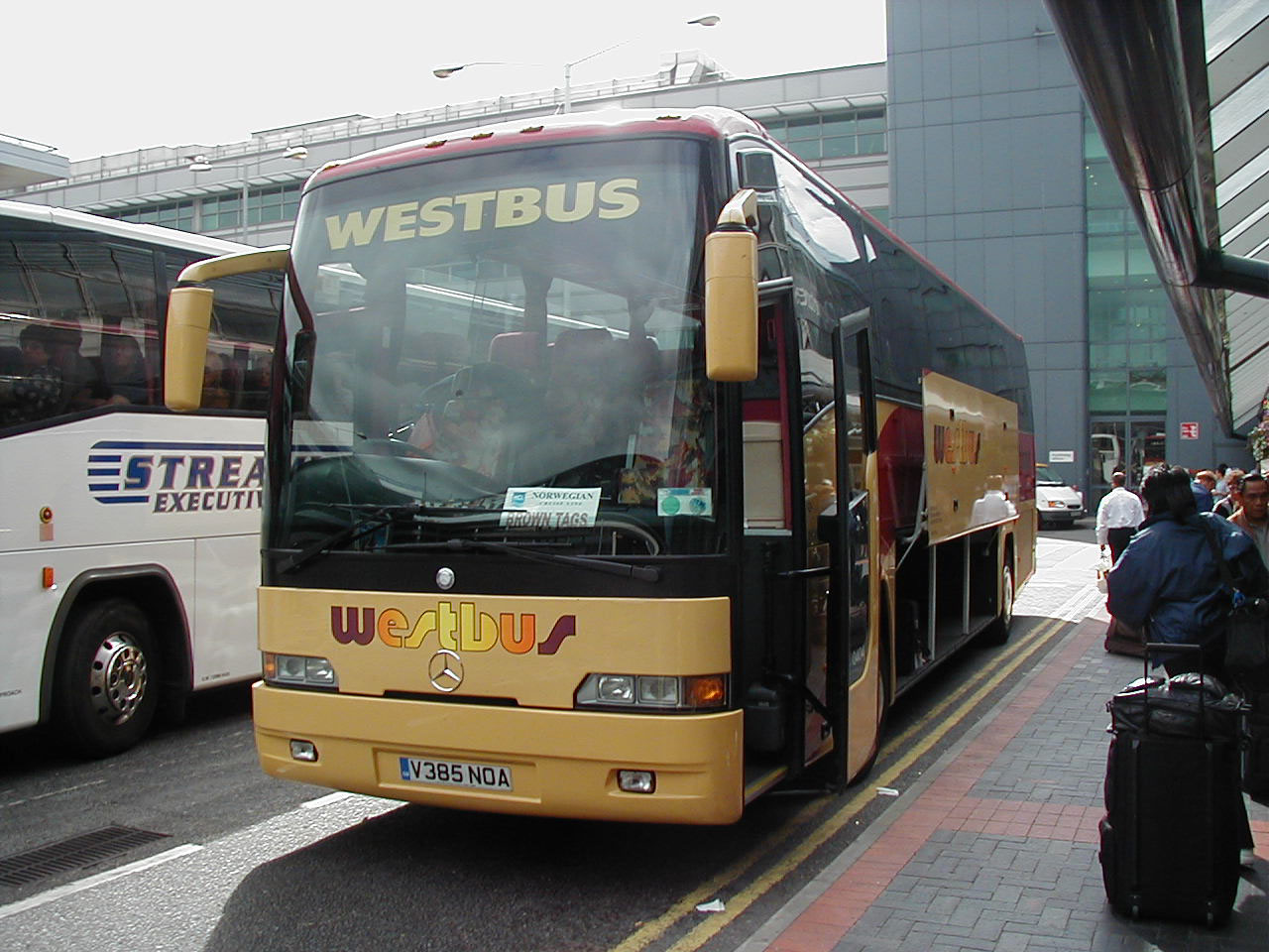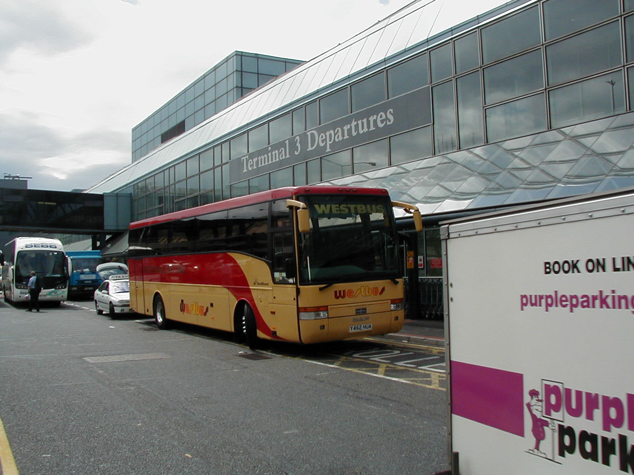 DAF SB3000/Van Hool from 2001 is another Westbus coach outside Heathrow's Terminal 3. It is part of a batch which was shared with National Express' other airport operations.