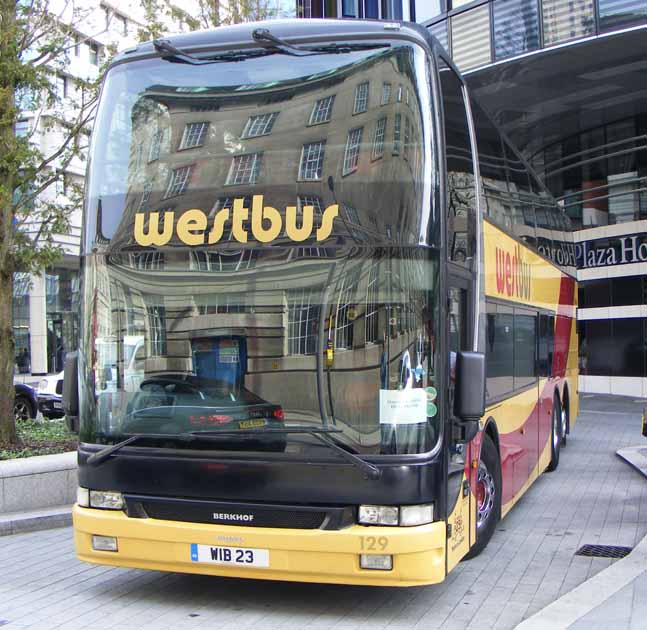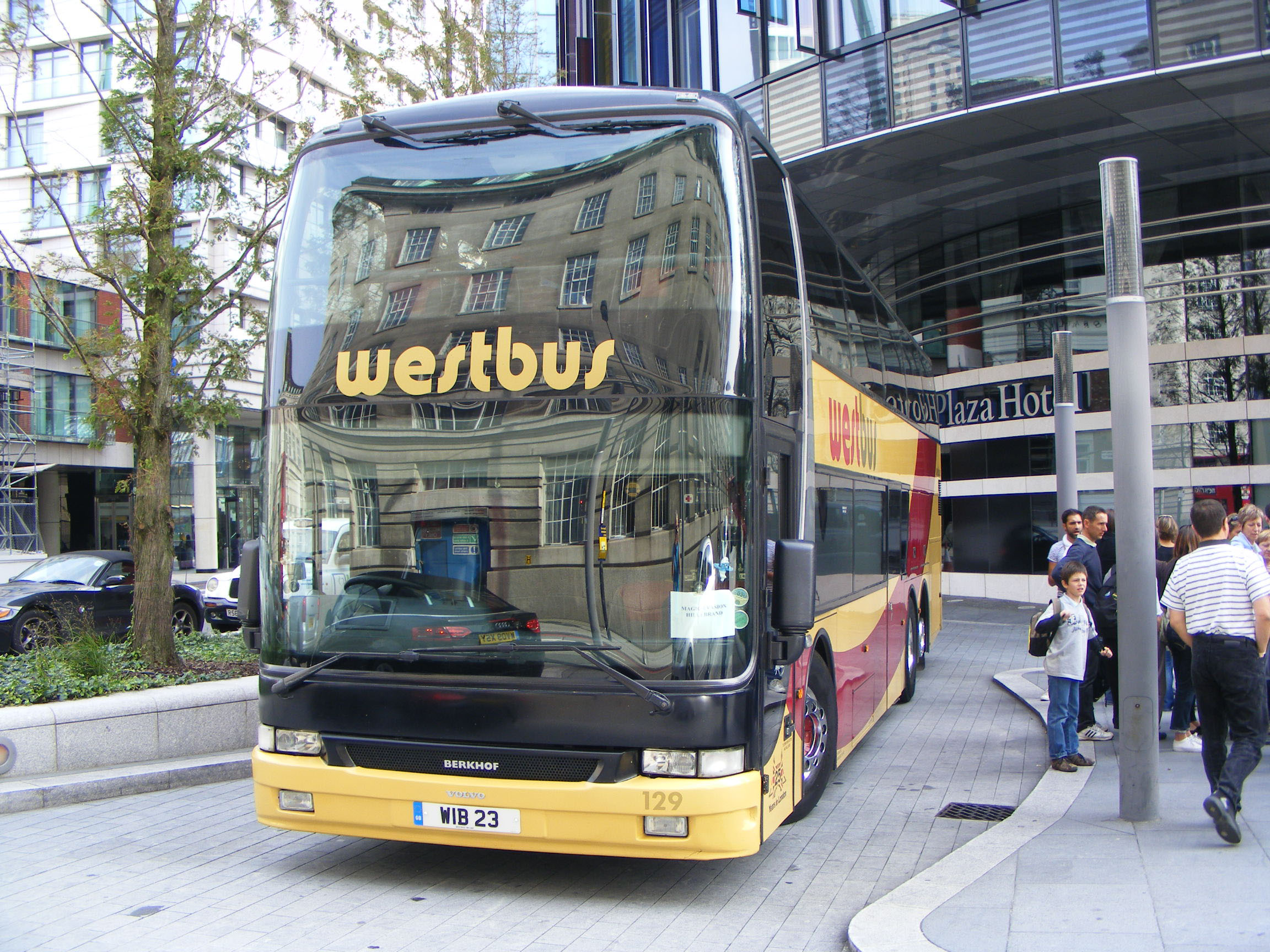 Pride of the fleet in 2011 was this doubledeck Berkhof bodied VDL, 129 (WIB23), seen in mid September picking up a party from a hotel on the south bank of the Thames near Waterloo. A sharp contrast to the Olympian or Spectra.
