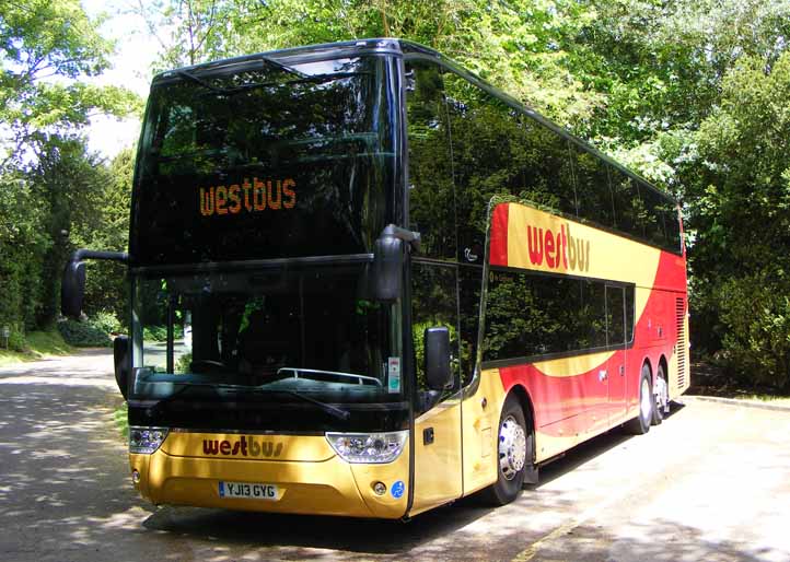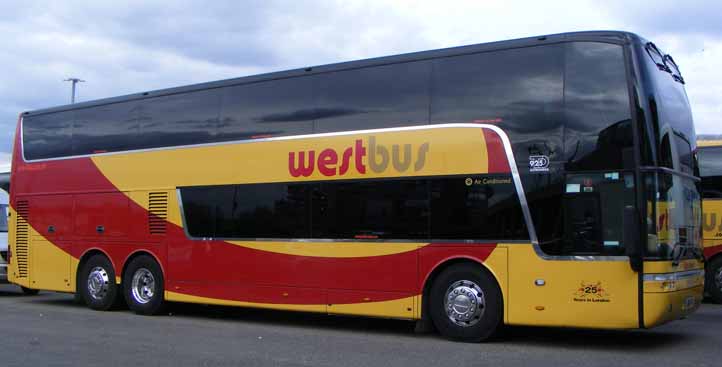 Van Hool Astromega 142 (YJ61FFD) was seen at the Heathrow Ramp Coach Park in May 2012.