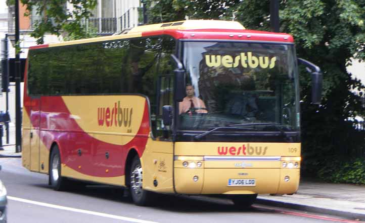 Transferred from fellow CDC subidiary Armchair was Van Hool Alizee bodied VDL SB4000 109 (YJ06LDD) seen in west London in July 2012. |