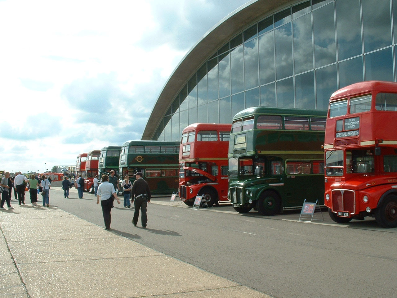 2006 was a special occasion for EFE and the launch of their new 8 model Routemaster definitive collection. For the first time the Museum allowed the representative buses to be parked on the front of the American Air Museum which made a fine display. Unfortunately RM1 failed to make the display due to mechanical problems, but as we had RMC4 representing the RMC class, it took the place of the prototype Routemaster and RMC1517 stepped in to replace it as the representative RMC. A last minute cancellation lost the representative of the last day in service RML on the 159.