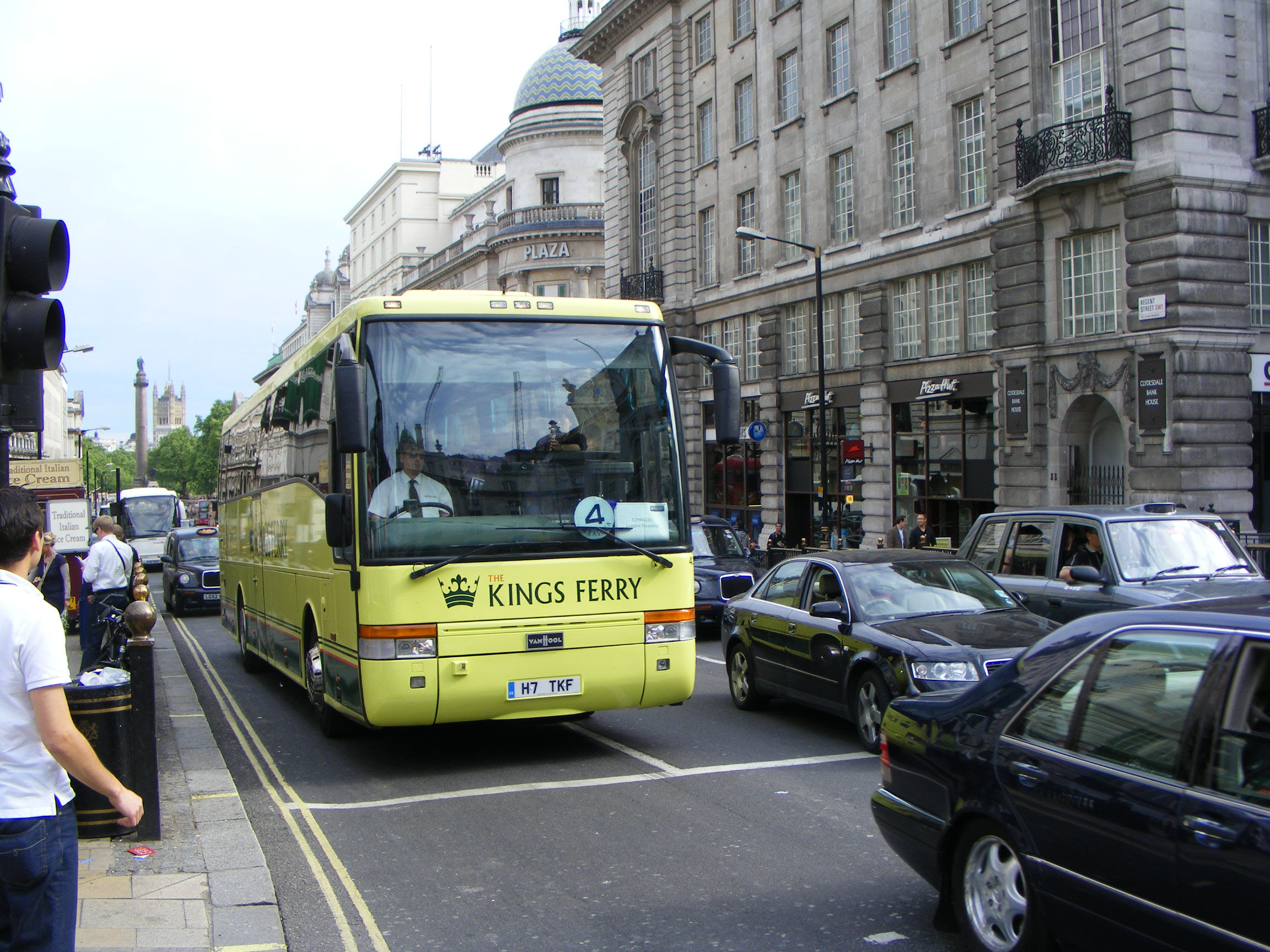 Loading with homebound commuters, this Van Hool coach is typical of the smart King's Ferry fleet.