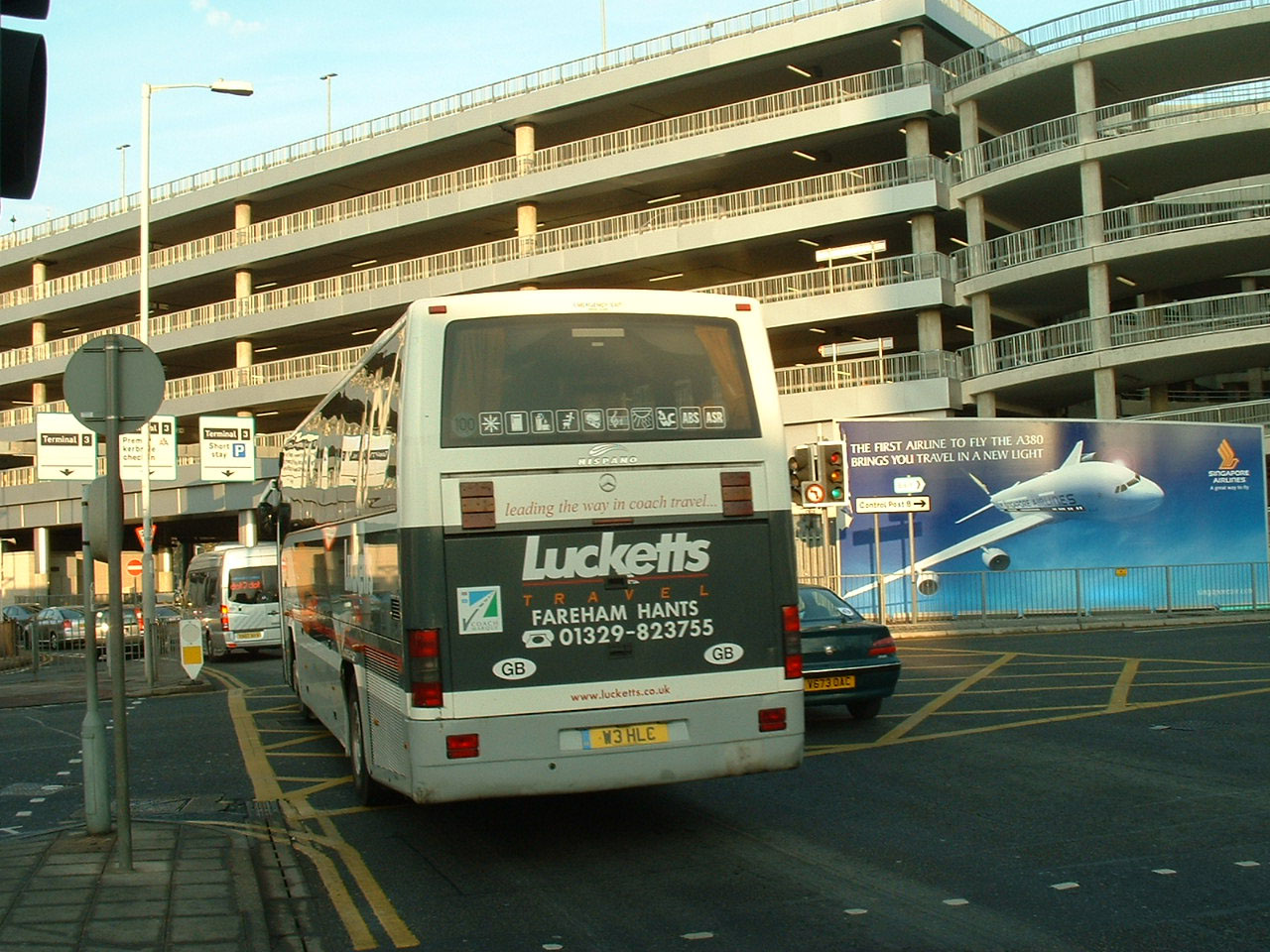 Also at Heathrow, and probably in 2008, the Mercedes is seen with a pair of Irizar Century bodied Scanias.