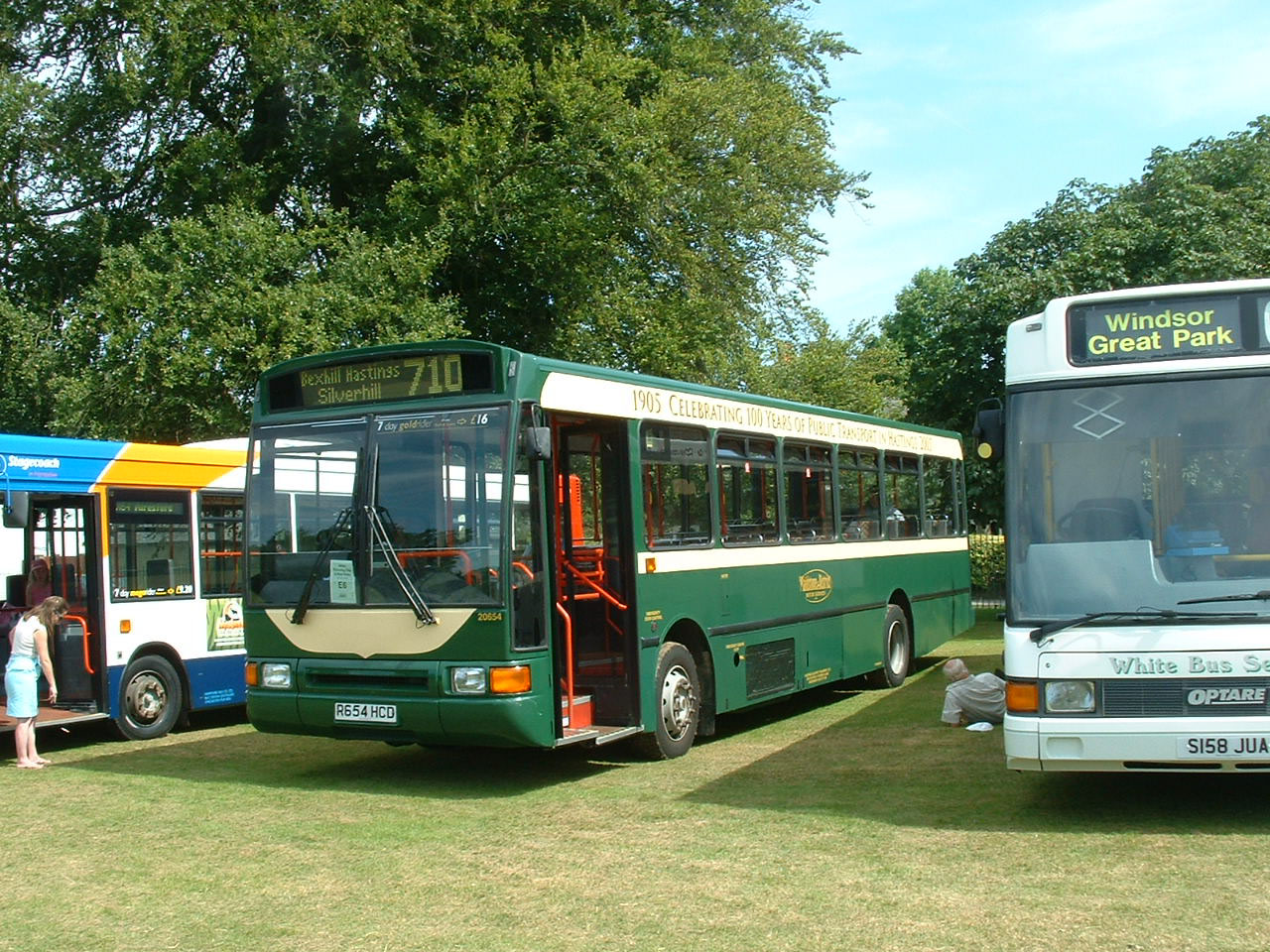 Stagecoach Volvo B10M/Plaxton Paladin 20654 (R654HCD) was chosen to carry Maidstone & District centenary livery. Stagecoach's Hastings area operations, acquired as Hastings & District were originally part of the M&D fleet. The bus is seen at the Alton Rally in 2006.