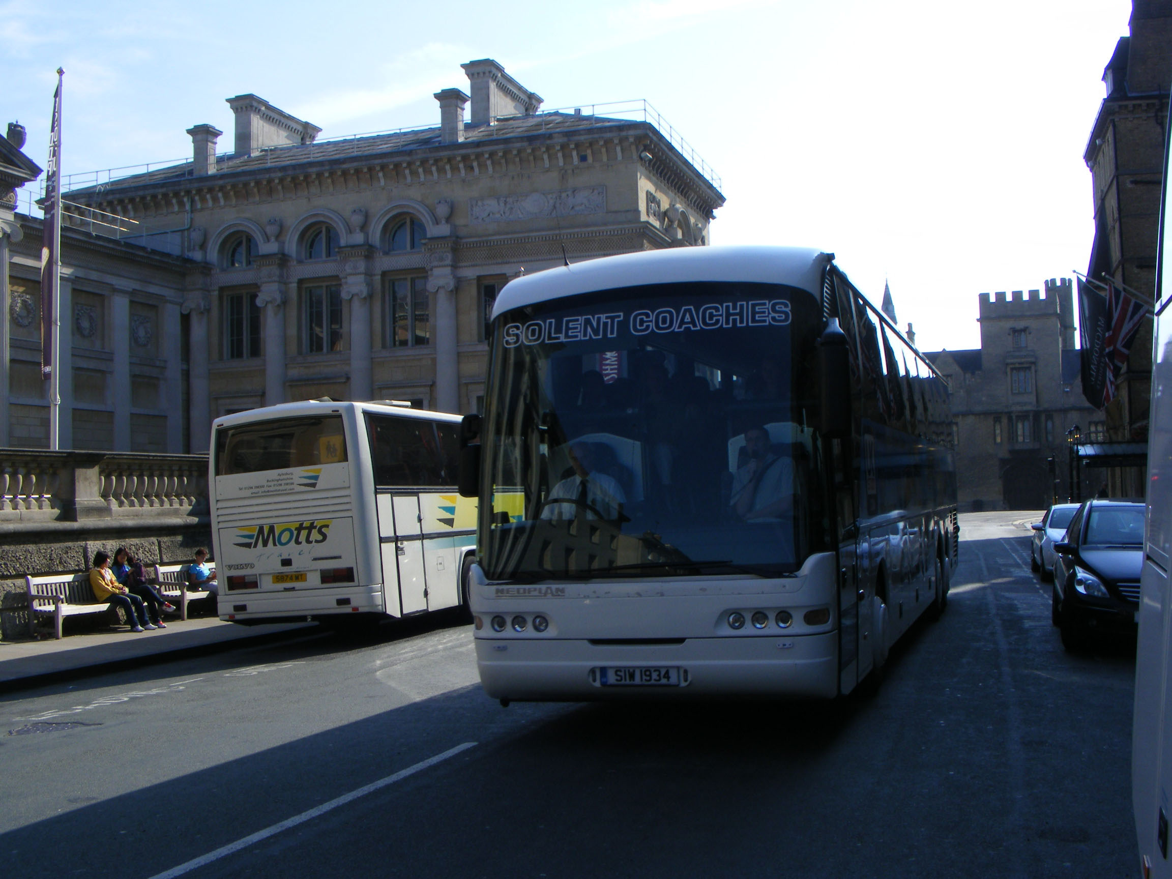 Seen in Oxford in June 2010 is Neoplan Euroliner SIW1934 of Solent Coaches. Across the road is a Motts Travel Jonckheere bodied Volvo B10M. |