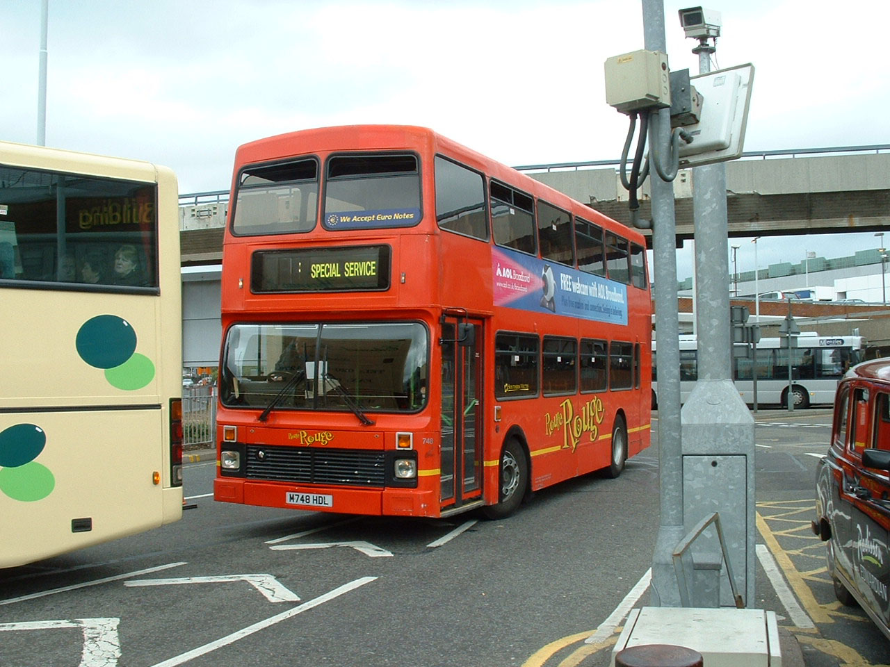 No where near the Isle of Wight - or a bus rally - is 748 (M748HDL) another Route Rouge Northern Counties bodied Volvo Olympian. The bus is on Underground Rail Replacement work in London in Spring 2004.