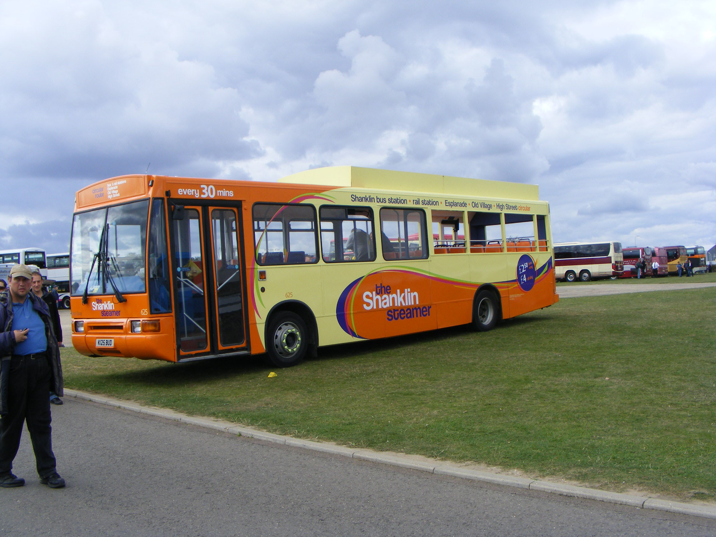 Seen at SHOWBUS international 2011 is former London General VN8 (K8KLL), new as the resurrected "Clapham Omnibus". The bus was transferred within Go-Ahead to the Oxford Bus Company as their 125 re-registered K125BUD. The Northern Counties bodied Volvo B10B arrived at Southern Vectis as their 625 from Bluestar where it had acquired its third fleet number. Major surgery transformed the bus for its new role as the "Shanklin Steamer". |
