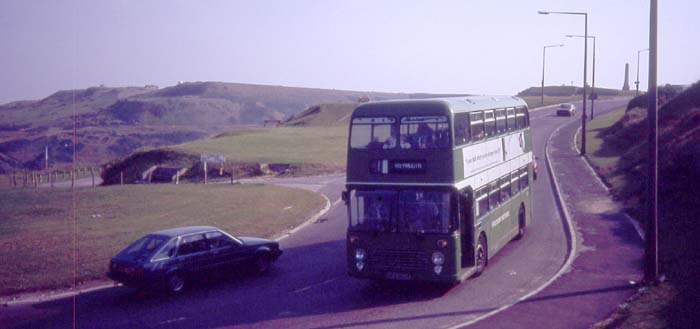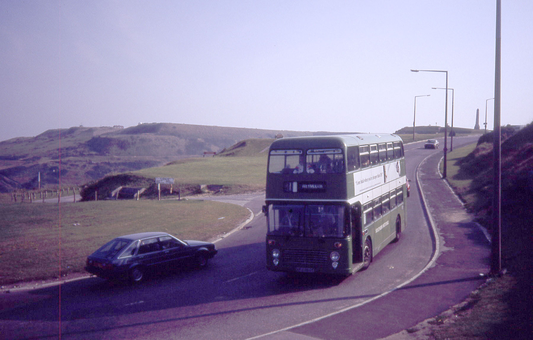 This Bristol VR was still in NBC livery and is seen wending its way downhill from Portland towards Weymouth.