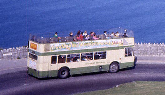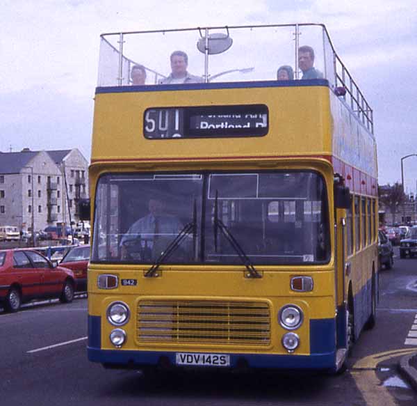 Former Devon General open top Bristol VR 942 (VDV142S) moved to Southern National and is seen here on the