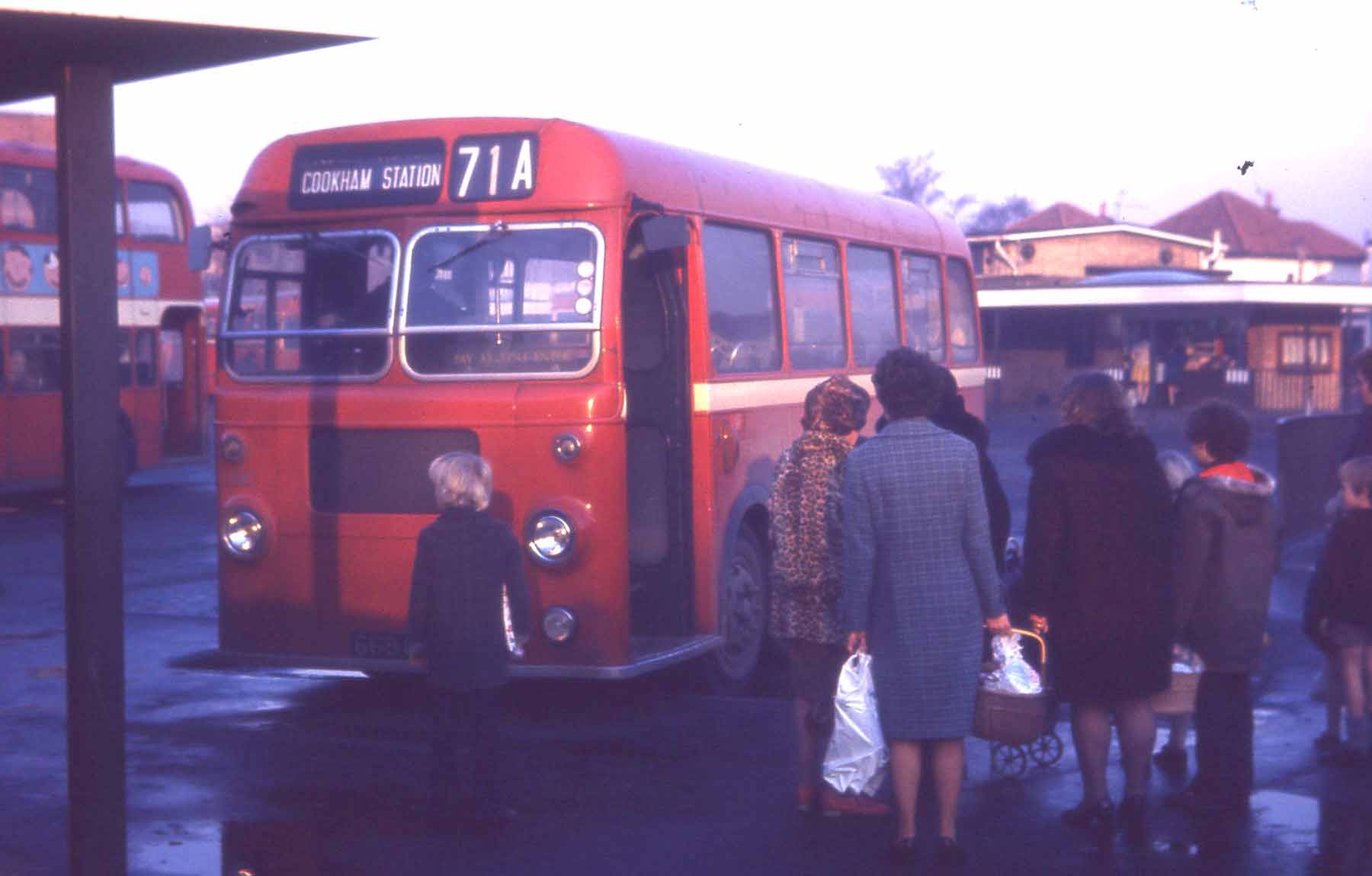 Southern National 613 (669COD) was one of a pair of Bristol SUS4As acquired in 1970 by Thames Valley, together with three similar machines from Bristol Omnibus. This is Thames Valley 197 on route to Cookham from Maidenhead Bus Station, but the main reason for the acquisition was to replace lightweight SC4LKs with a bus capable of getting over Marlow Bridge without it collapsing on the associated route to Marlow from Maidenhead.