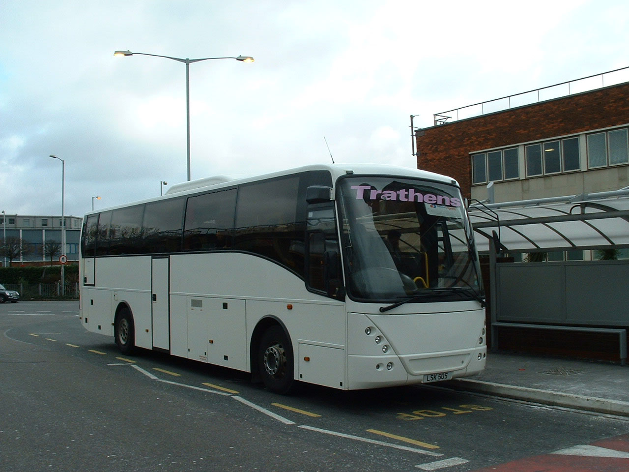 Jonckheere Mistral bodied Volvo B12M, LSK505, of 2004 is seen at Heathrow Airport in February 2005 on hire to National Express. |