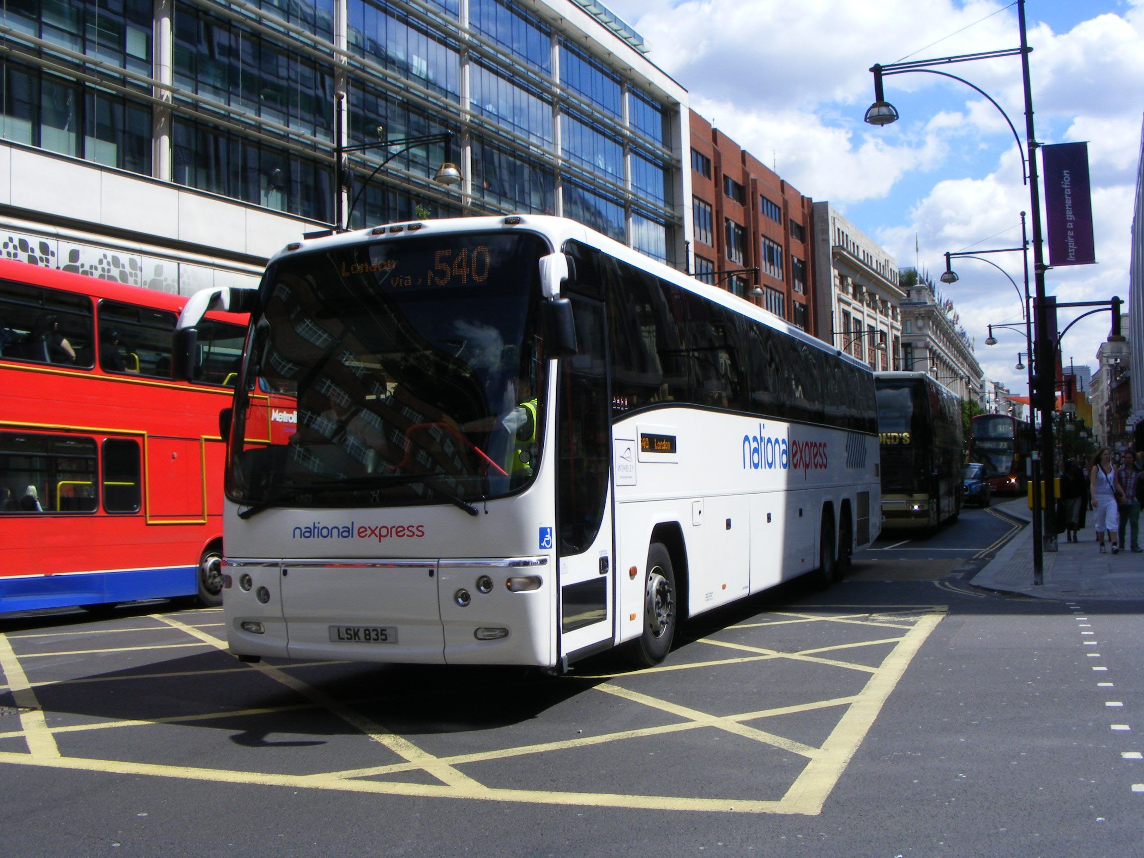 In July 2012, Plaxton Panther bodied Volvo B12BT LSK835 is seen nearing then end of its journey from the south west in Oxford Street. Note the Richmond's Van Hool decker behind. |