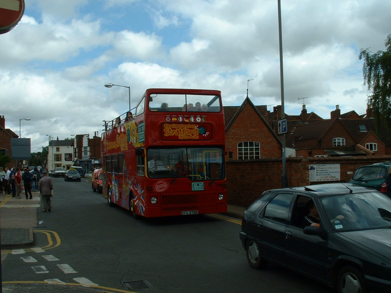 Former Newport Transport MCW Metrobus, 70 (DTG370V), 370 with City Sightseeing is seen in Stratford in summer 2004 with Guide Friday branding.