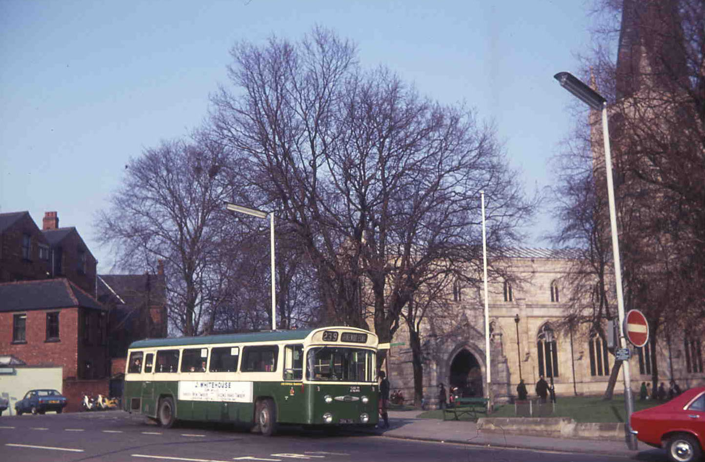 Neepsend also bodied a batch of Daimler Roadliners, a rear ending singledecker rated for reliability on a par with the Panther! Ten, 71-80 (ORA71-80E), were delivered shortly before the ten Panthers, one is seen here by the cathedral with its famous skewed spire.