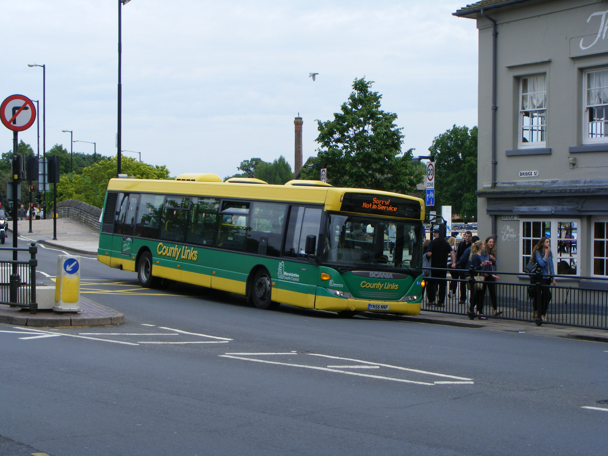 Diving into Bridge Street in June 2012 is Warwickshire Council CountyLinks Scania CN230UB YN56NNF, operated on behalf of the council by Johnsons. Maybe the experience of operating this bus and the Scania deckers persuaded Johnsons to purchase new Scania singledeckers in 2013 and forsake Optare.