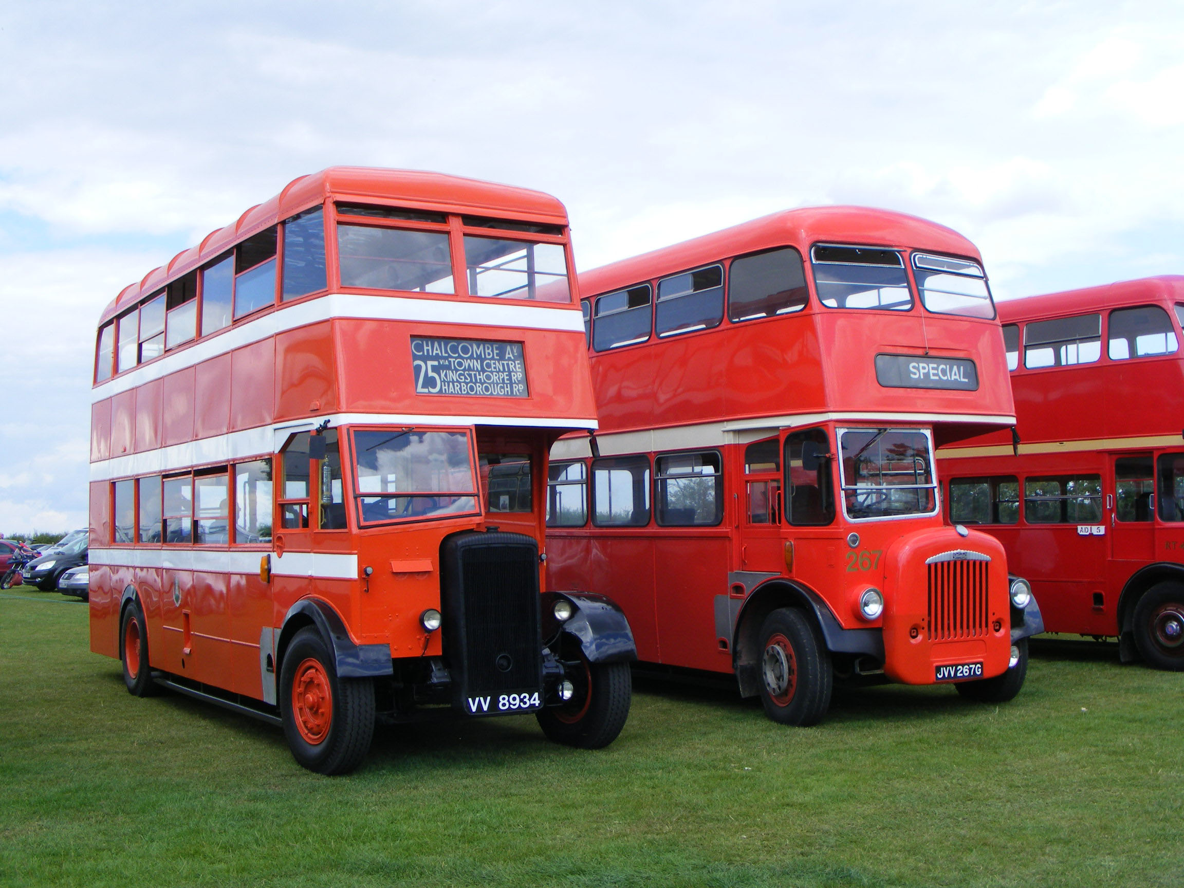 Daimler 267 is seen again at SHOWBUS 2011 with Lowestoft's Massey bodied Leyland Titan PD2A, 2 (PBJ2F). The bus was the last rear entrance front engined doubledecker supplied to Northampton Transport and the last supplied by Daimler to the home market. |