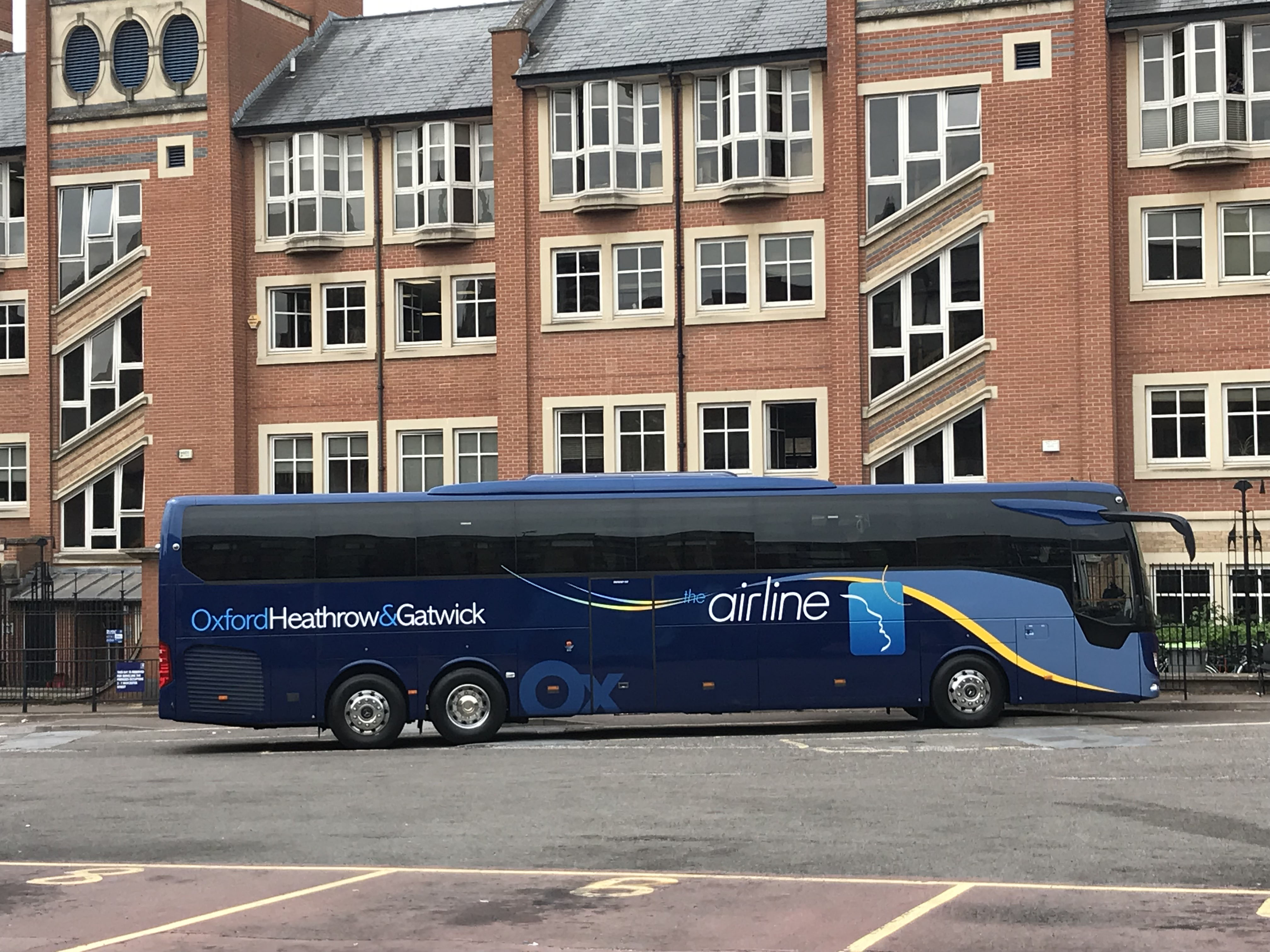 Seen in Gloucester Green when brand new in July 2019 is Mercedes Tourismo 30 (BV19YGM). A batch of eleven entered service on airline that month, Oxford suffering the same delivery delays on Tourismos that year as other operators. This left the service in the hands of Tourismos and the Elite-i Volvos.