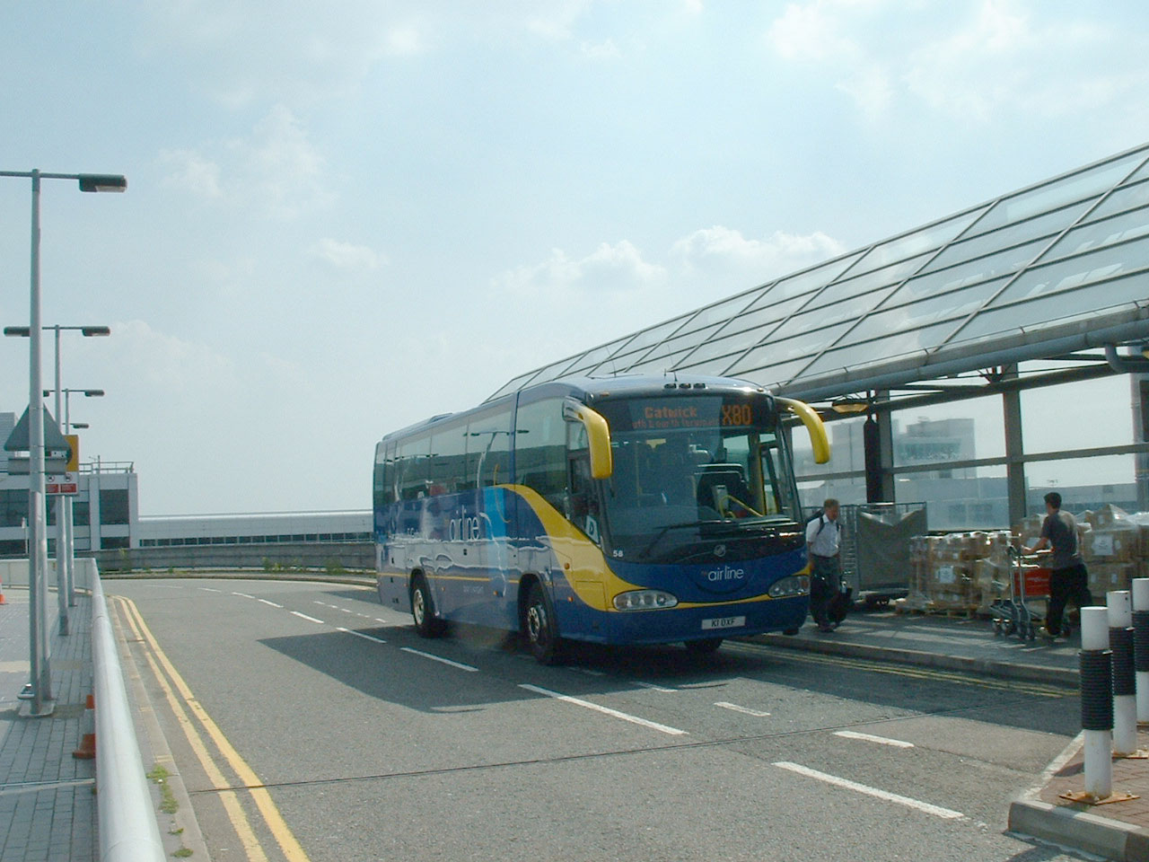 Oxford airline Irizar Century bodied Scania K114EB 58 (K1OXF) is seen at Gatwick Airport in summer 2007.