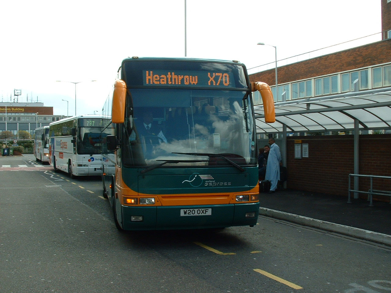 The same coach is seen speeding to London on the M40 at Handy Cross, High Wycombe. In common with the rest of the Espress Excaliburs, the coach was previously in blue livery on the airline route. de Courcey Travel fleet acquired 23 later. |