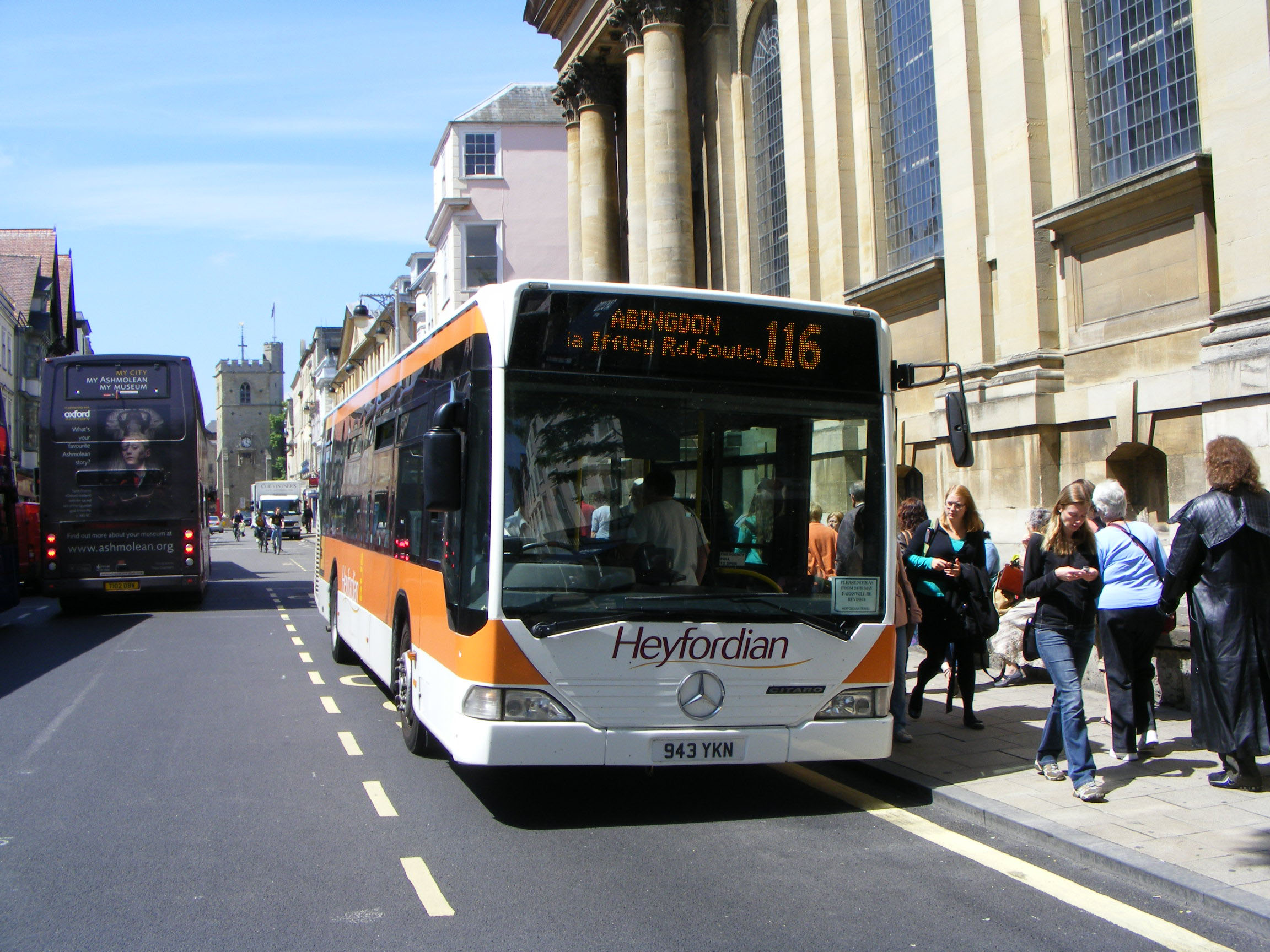 Unique in the fleet at the time - June 2010 - was Mercedes Citaro 943YKN, seen in St Aldate's bound for Abingdon. The bus, which soon left the fleet, was new to Stratford Blue in Warwickshire County Countrylinks colours for funded services in that county. |