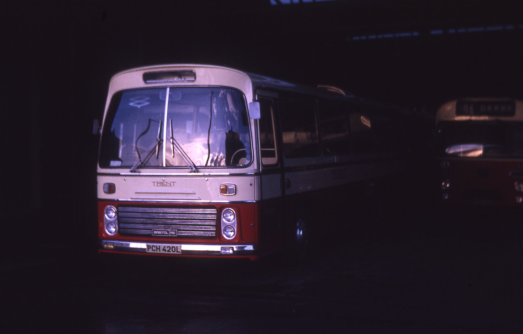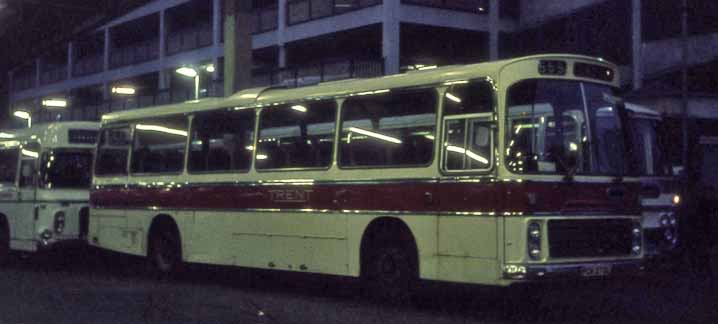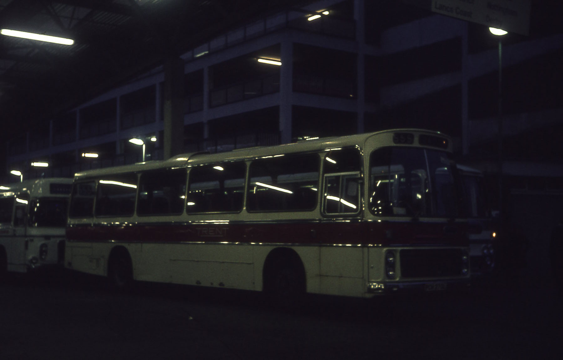 The unmistakeable location of Victoria Coach Station and a newly delivered Brsitol RELH6L, 270 (PCH270L) prepares for an evening run north. The modern ECW body was a classy design and suited the restrained traditional Trent coach livery well. Sadly the coach would soon be repainted in National white with red and blue insignia and the merest mention of the long standing Trent company.