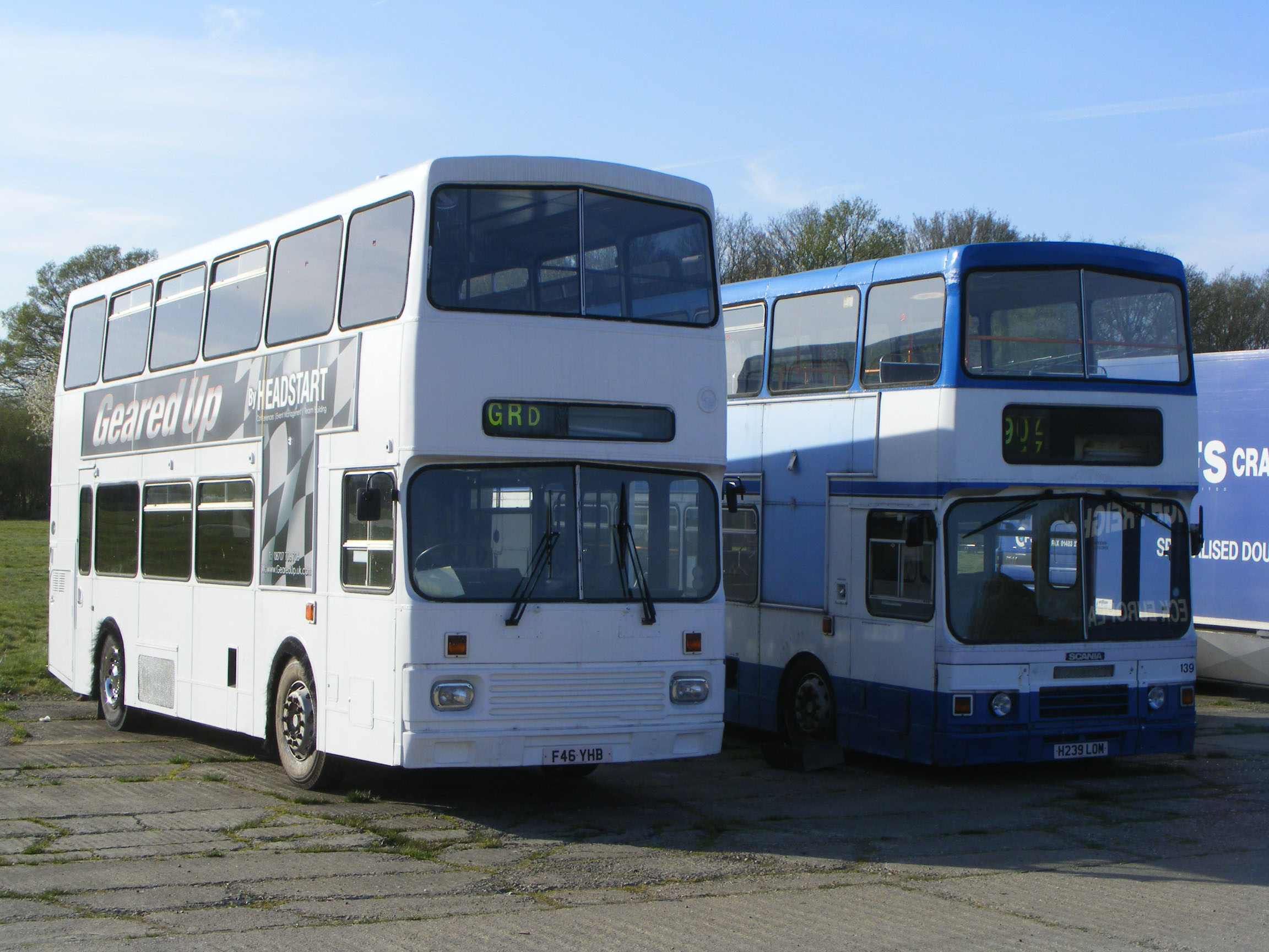 Skylark WDA4T is not only a former London Leyland Titan, it was originally with West Midlands PTE and is one of five bought when the model was launched for evaluation. The Midlands operator ended up standardising on the local MCW Metrobus product. At an early stage in their lives the five deckers passed to what became Stagecoach Selkent within London Transport. The buses were fitted with coach seats so rarely, if at all, found use on LT services. The bus here at SHOWBUS international 2002 was then with Skylark. |