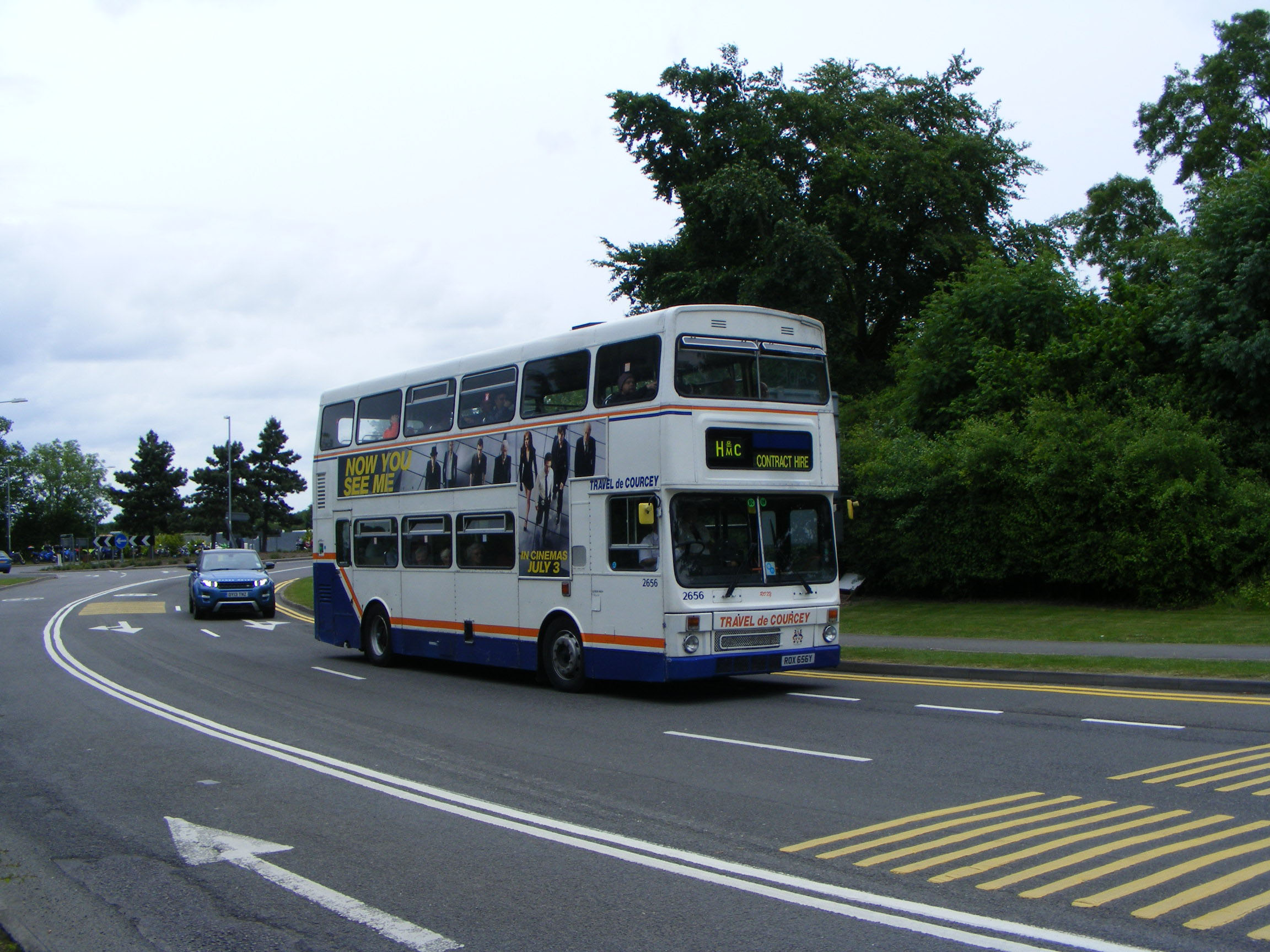 On a car park shuttle for an event at the Gaydon Motor Heritage Centre in June 2013 was former West Midlands MCW Metrobus 2 2656 (ROX656Y). The bus had retained its fleet number with de Courcey. |