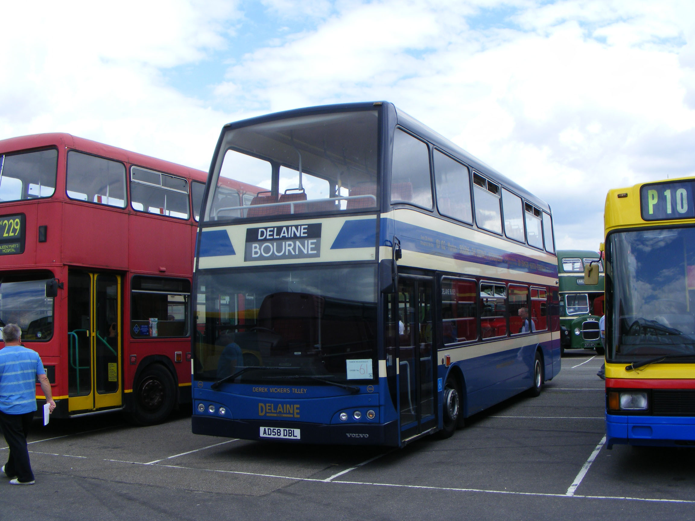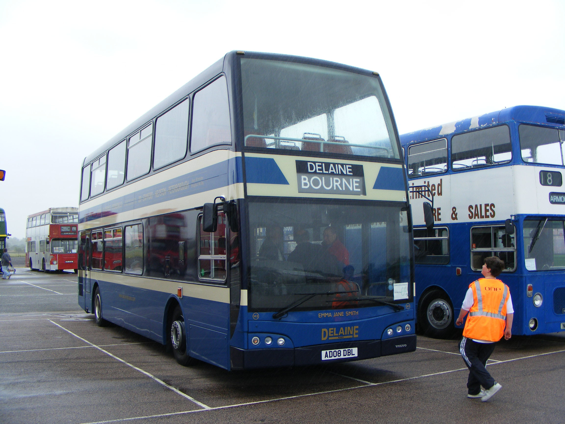 In awful weather at North Weald 2008 was Delaine's newest acquisition - 143 (AD08DBL) an East Lancs Olympus bodied Volvo B9TL.