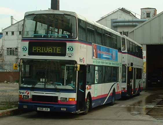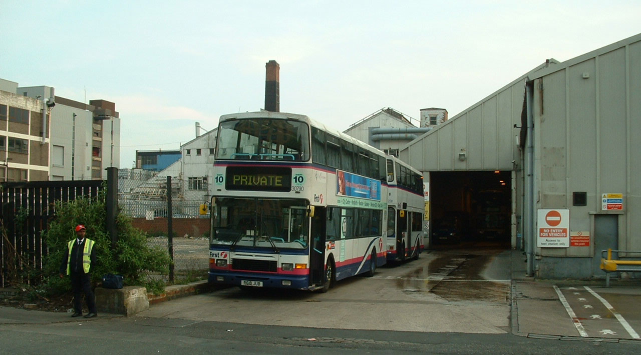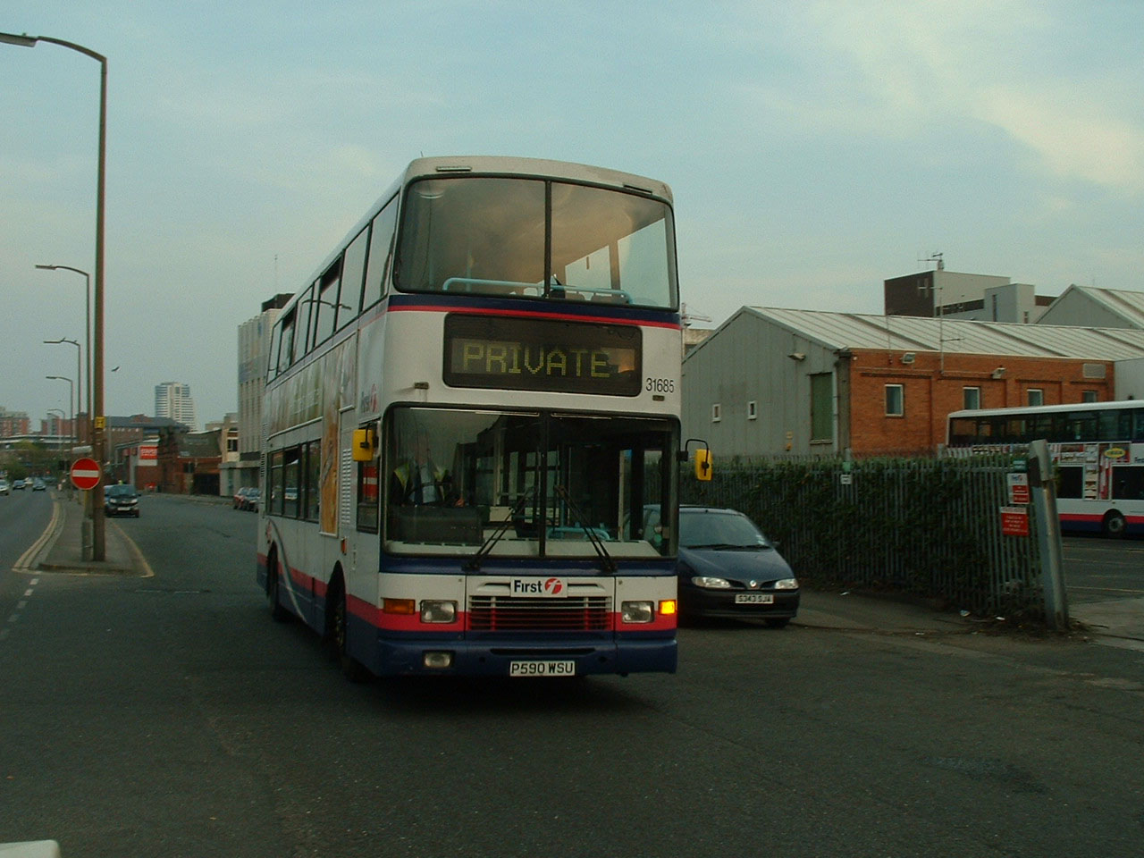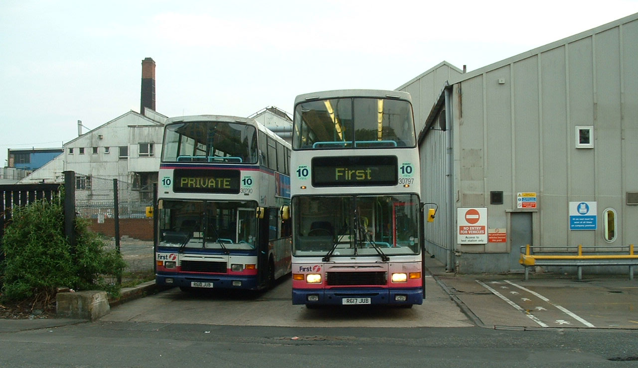 In early 2007 the handsome Alexander Royale bodied Volvo Olympian was the mainstay of the doubledeck fleet in Leeds. The local delivery had been supplemented by transfers from within the group of buses like 31685 (P590WSU) which had arrived from First Glasgow and is seen passing Bramley depot. |