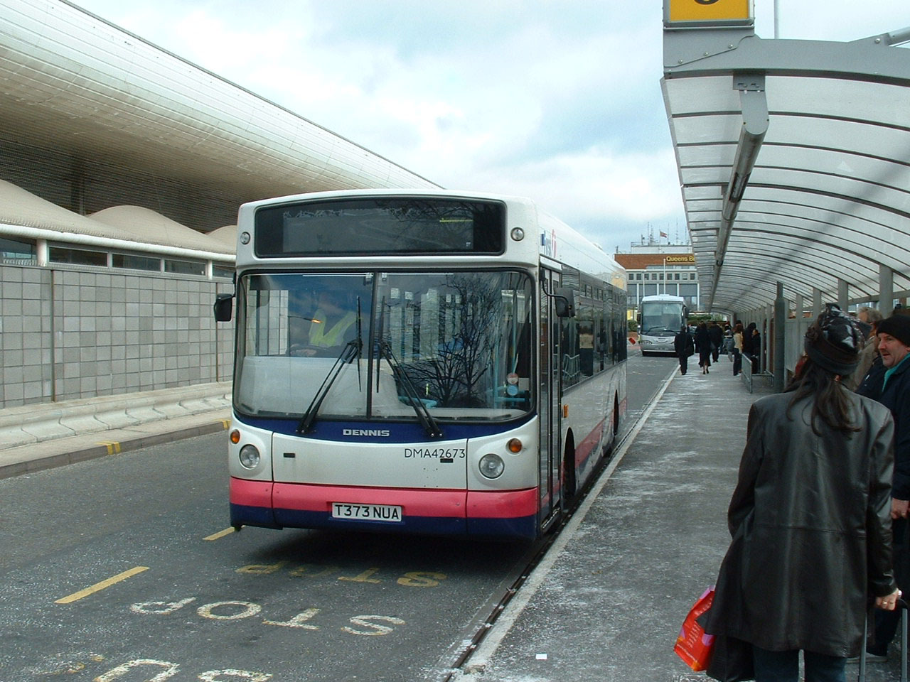 This Alexander ALX200 Dart, DMA42673 (T373NUA) is another First Berkshire bus from First York. It is seen at Heathrow early in 2005 substituting for one of the Slough based service's dedicated Mercedes Citaros. ![]() |