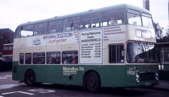NBC days are represented by this standard issue Bristol VRTSL3/ECW, 932 (HWJ932W), seen in Leeds Bus Station one evening rush hour in 1983. |