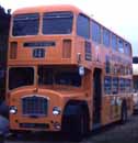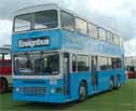 In 1977, with the Queen's Silver Jubilee, we had the National Showbus Jubilee Rally, with a road run starting from Windsor across to Uxbridge. Many buses were decorated appropriately, and National's open top Regent V, PFN867, was painted silver and brought the Mayor of Windsor and his wife to have lunch with the Mayor of Uxbridge at the show. Unfortunately, in taking a short cut into the show site to avoid the traffic jam, the centre piece of the NATIONAL EXPRESS Showbus display struck a very low tree branch sustaining damage to the top deck and showering the Mayor and Mayoress of Windsor in broken glass!