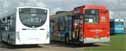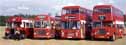 In 1975 National Express (South East) were persuaded to sponsor the event, exhibiting their Coach of the Year from the Brighton Rally (Bristol RELH/Plaxton GJD199N). A long association with John Wilson (then General Manager of NTSE) started, he was Chief Judge at SHOWBUS for many years and has missed only two during that time! The rally also took on responsibility for the free bus service between the showground and Uxbridge Station and another association - not quite as long - was struck with London & Manchester Assurance, their London Country advert bus being used on the service, aided by several of Ted Brakell's RTs, suitably adorned with L&M adverts. Another feature of the early SHOWBUS rallies was the number of Thames Valley and Alder Valley buses exhibited - thanks to David Howard. The buses often posed together after the event for exclusive photos.