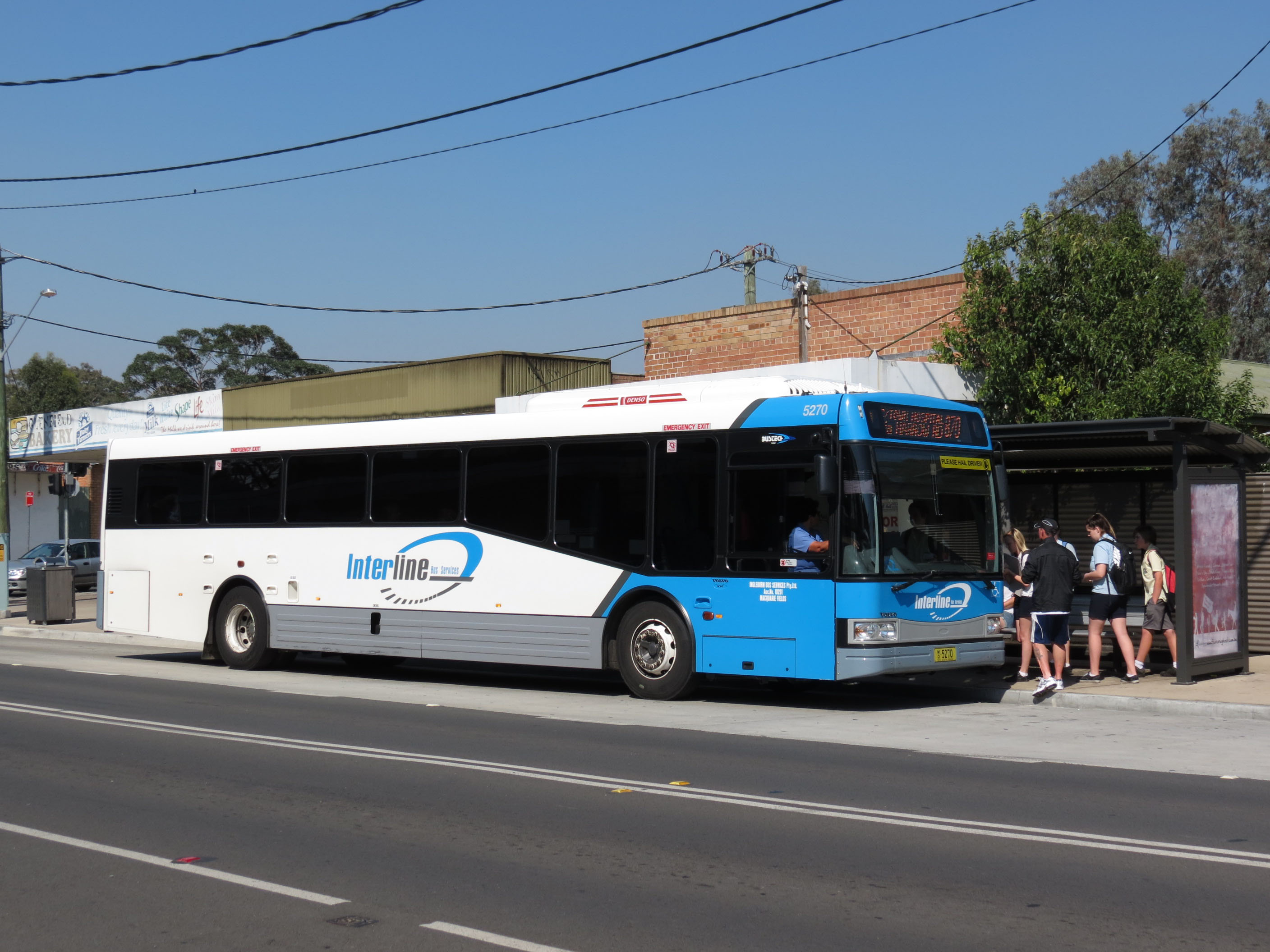 Seen on Railway Parade opposite Glenfield Station in October 2013 was three year old Bustech VST bodied Volvo B7RLE MO5270.
