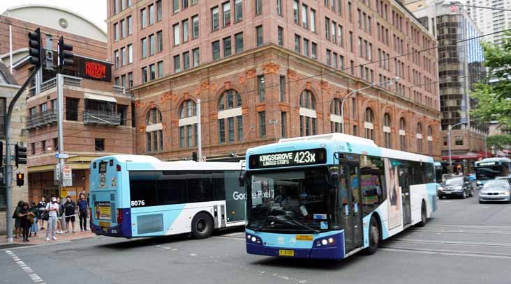 Another of the K320UB buses, 8109 (MO8109) crossing the tram tracks near Sydney Central that day with Volgren Optimus bodied Mercedes O500LE 8076 (MO8076), also new in 2020, heading the other way.