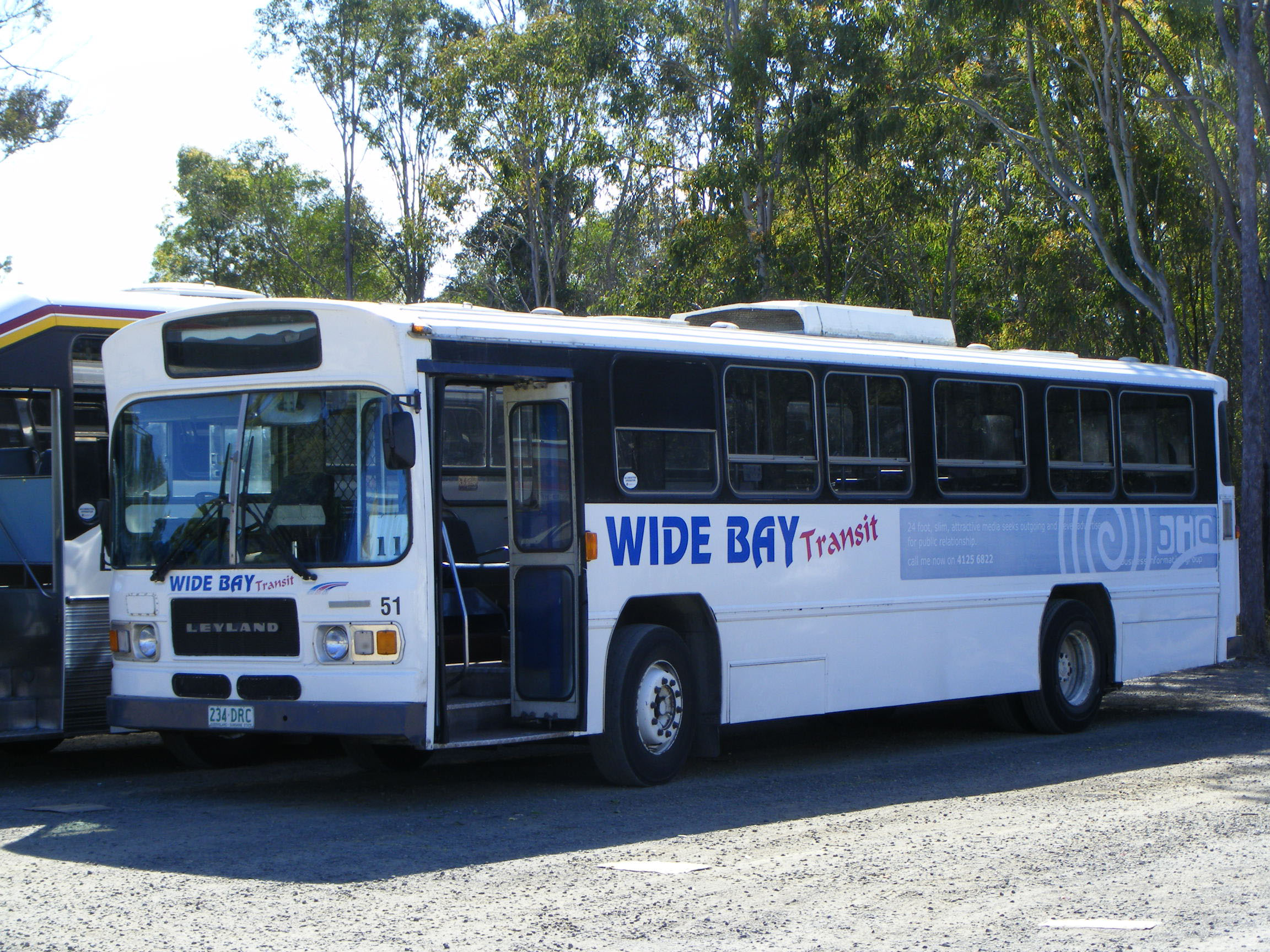 Wide Bay has had a sizeable fleet of Leylands, many with interesting histories. This Custom bodied Tiger was new to North & Western in Sydney in 1984 with rego MO613 and passed into the Sydney Buses fleet as 3580 (MO7872) when N&W was acquired by the state. It joined Wide Bay with the Bay Bus & Coach business with Queensland rego 213GJM and then gaining fleet number 87 but has since been withdrawn.
