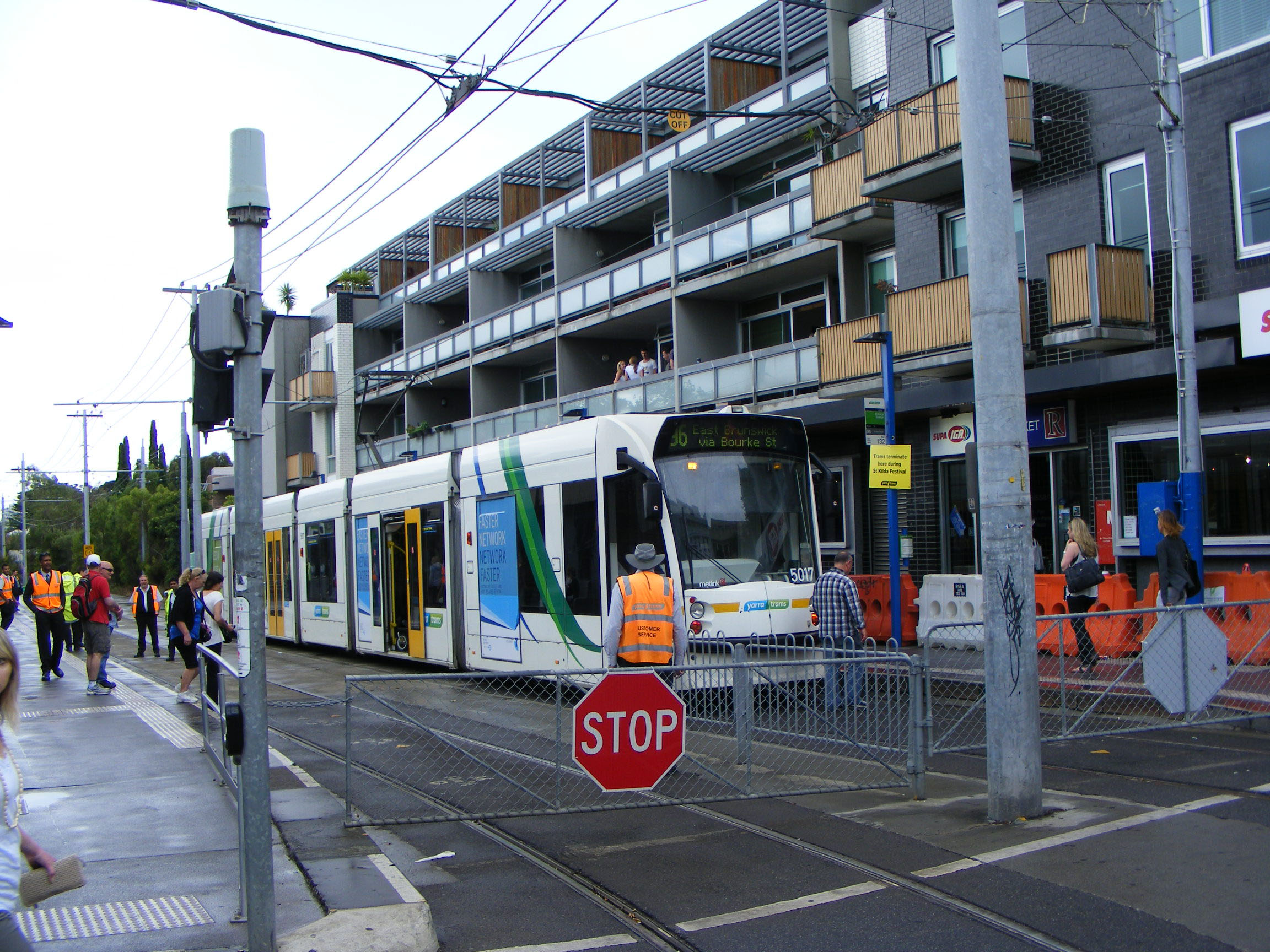 Another annual disruption occurs during the St Kilda Festival. This view at St Kilda Station in February 2012 shows that the track through to Acland Street is closed off, the whole area being pedestrianised for the day - they even set up a champagen bar on the tram tracks along the Esplanade.