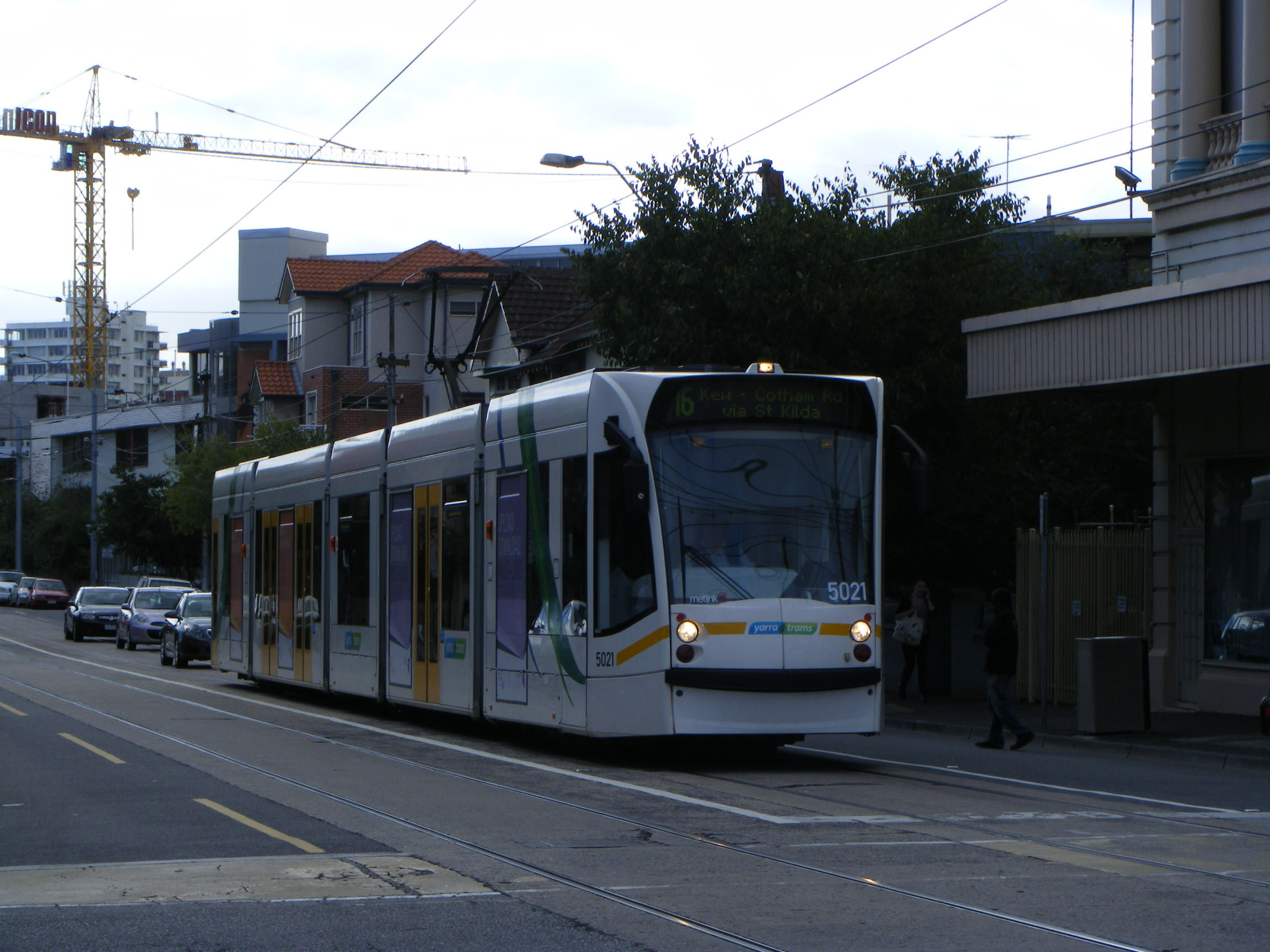Five section Combino 5021 was allocated to Malvern depot and appeared on a variety of routes, seen here on the 16 in March 2012. The rest of these large trams were only found on the 96 at the time.