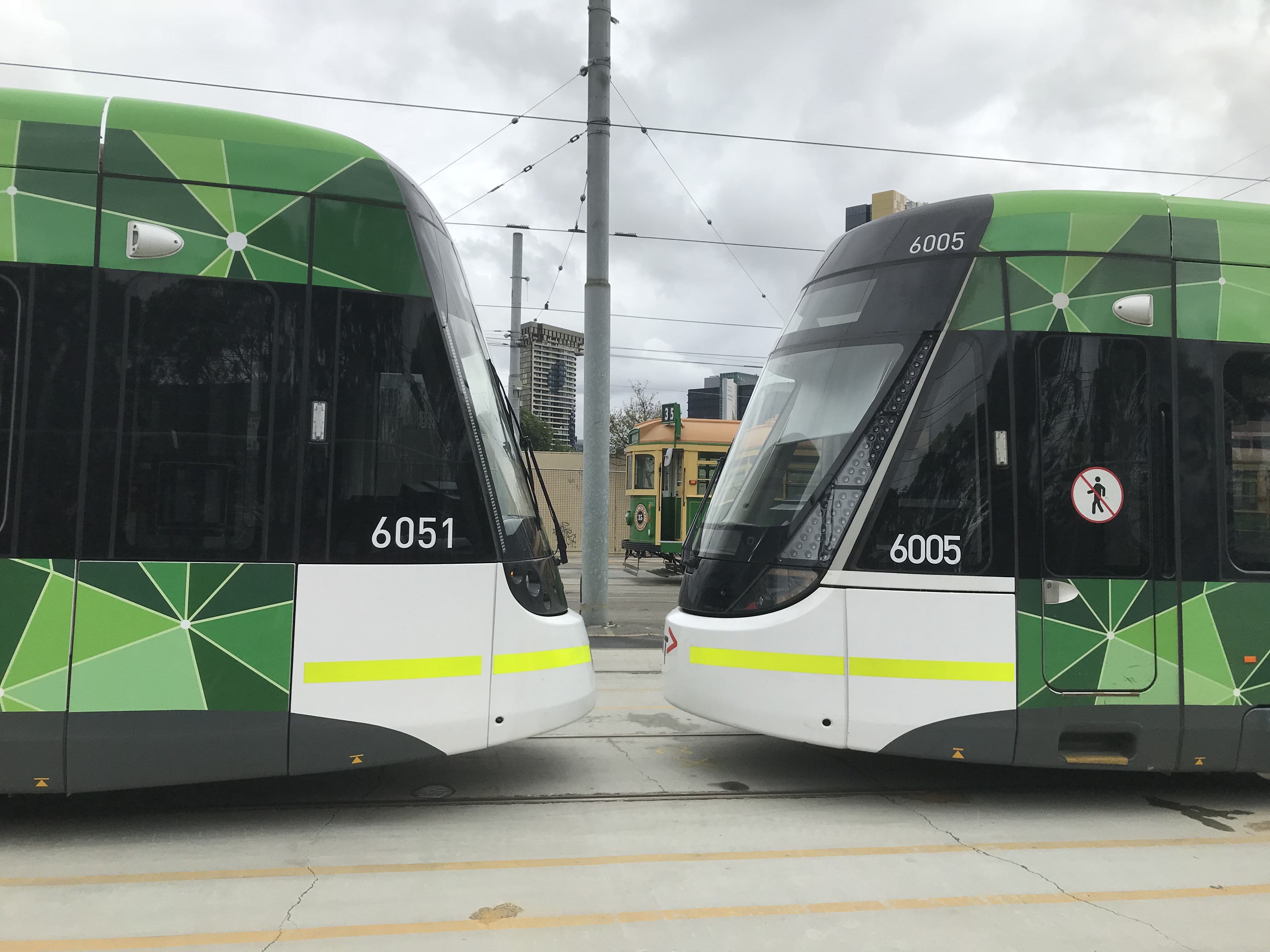 Moments later, at the MEC and the Crown Casino stop 6051 is paused with city bound 6017.