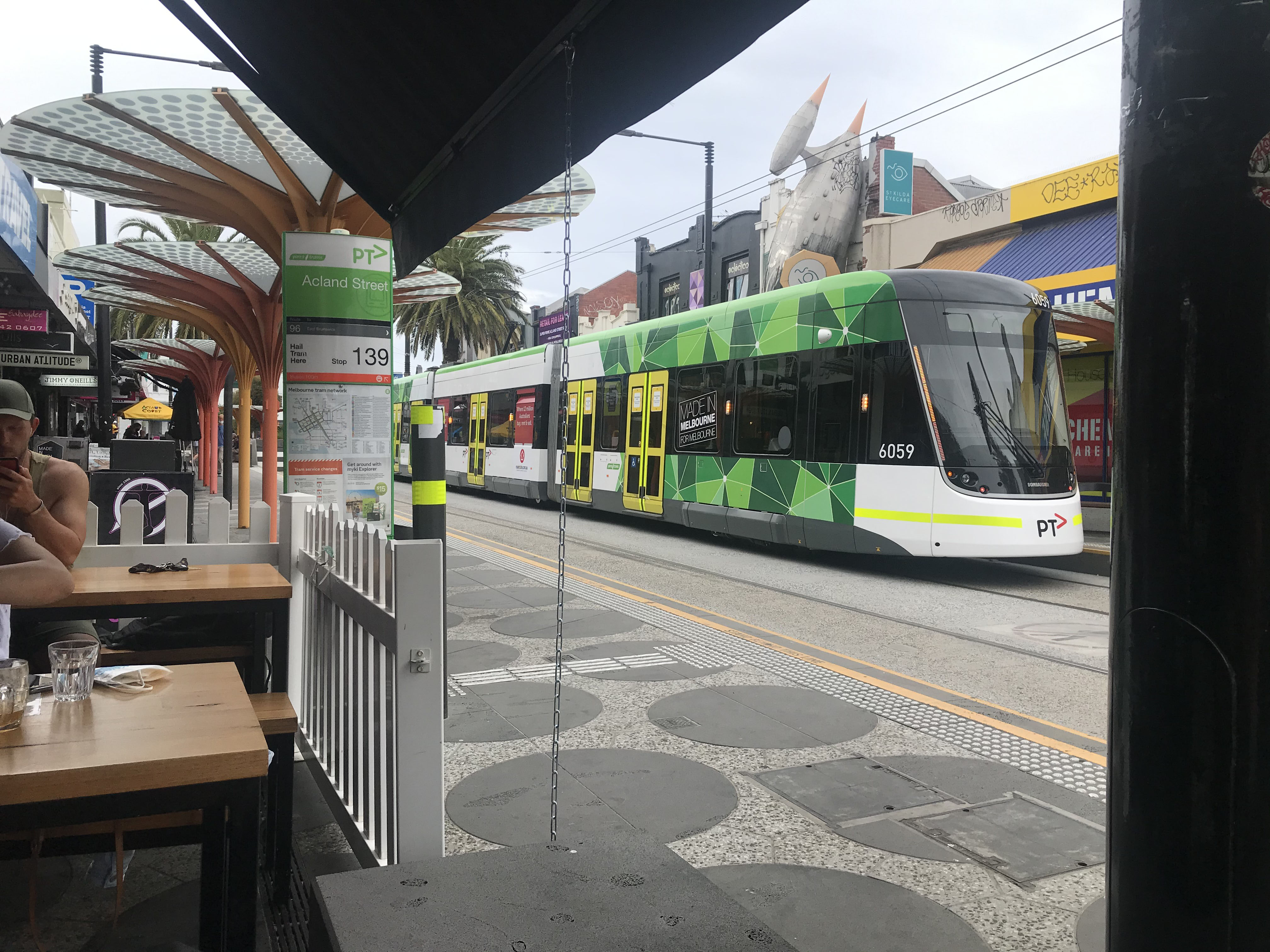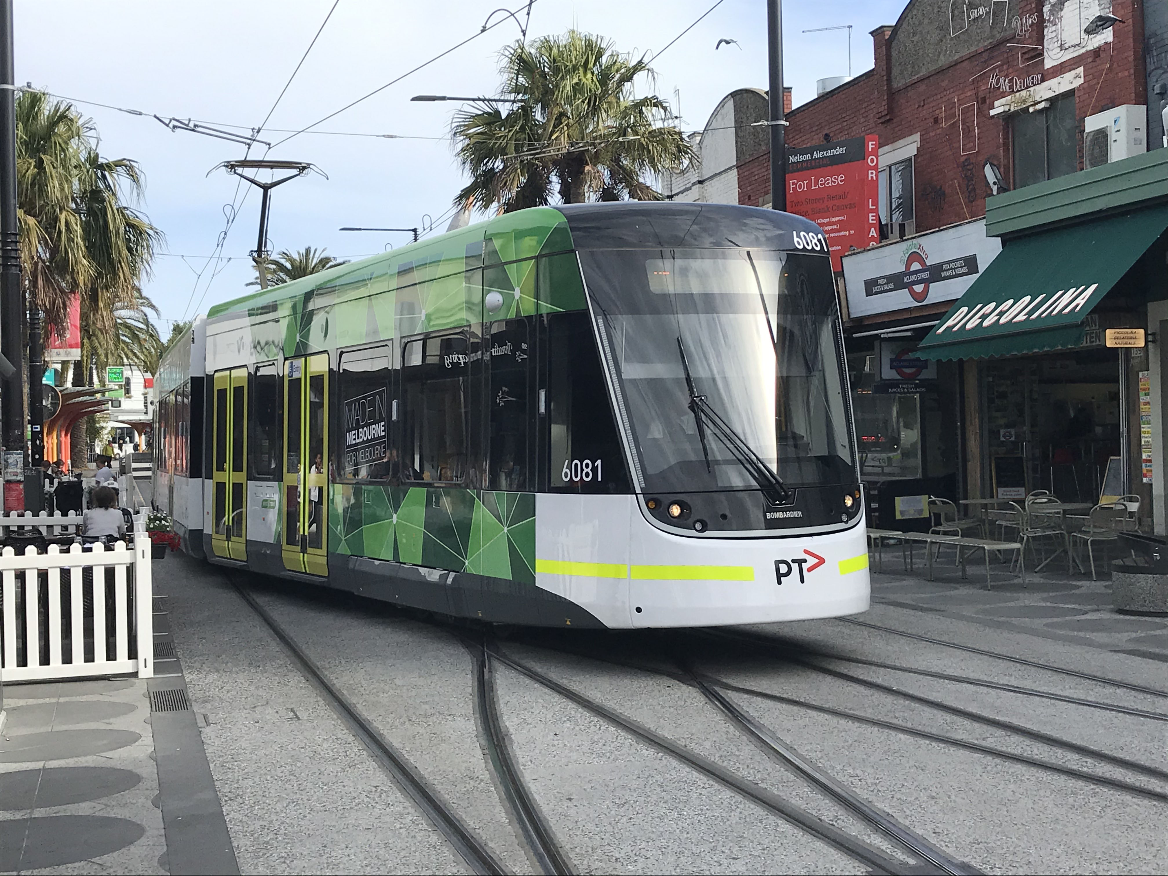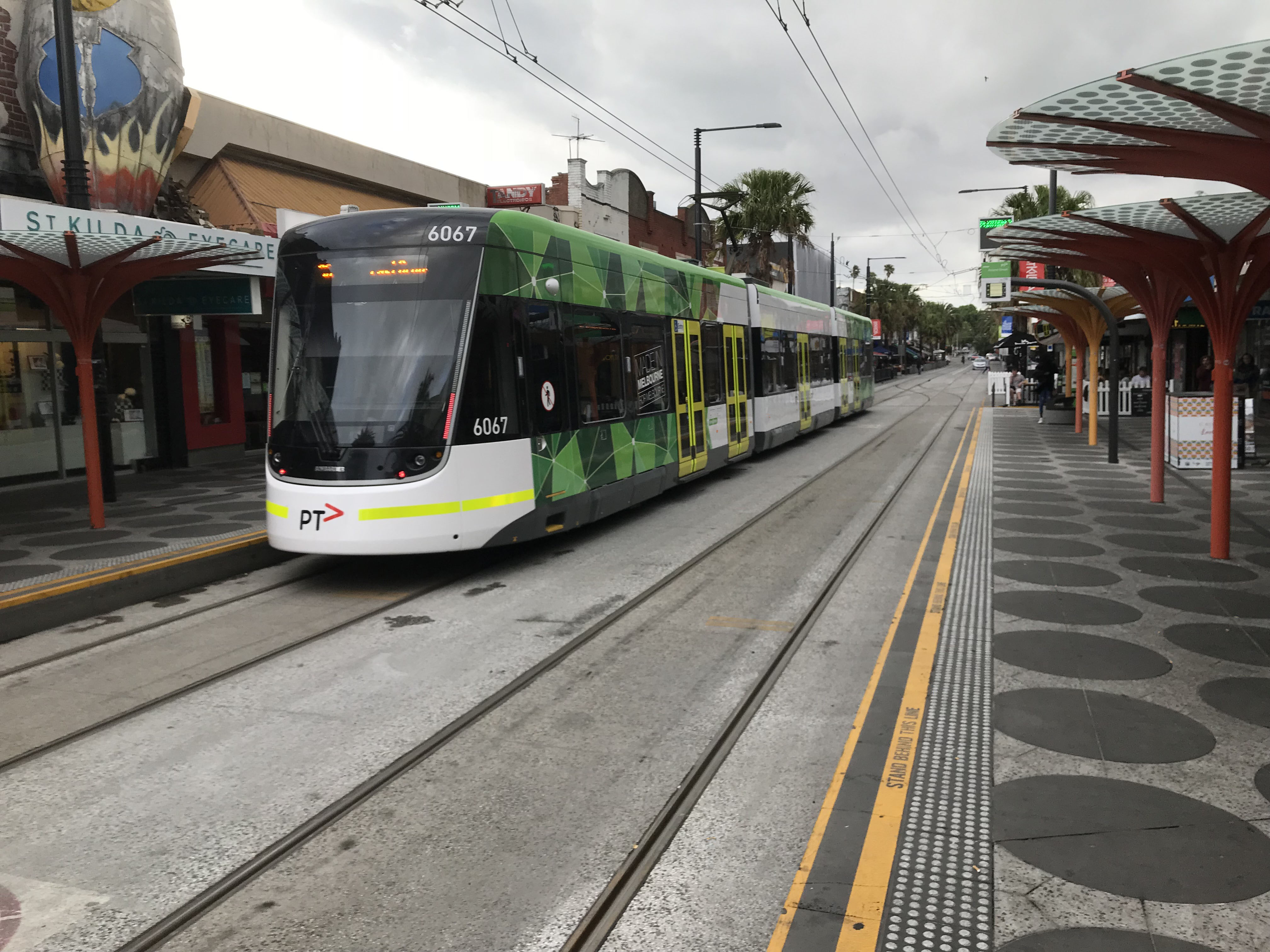 A nearside view of 6087 on St Kilda Esplanade, city bound, later in November.