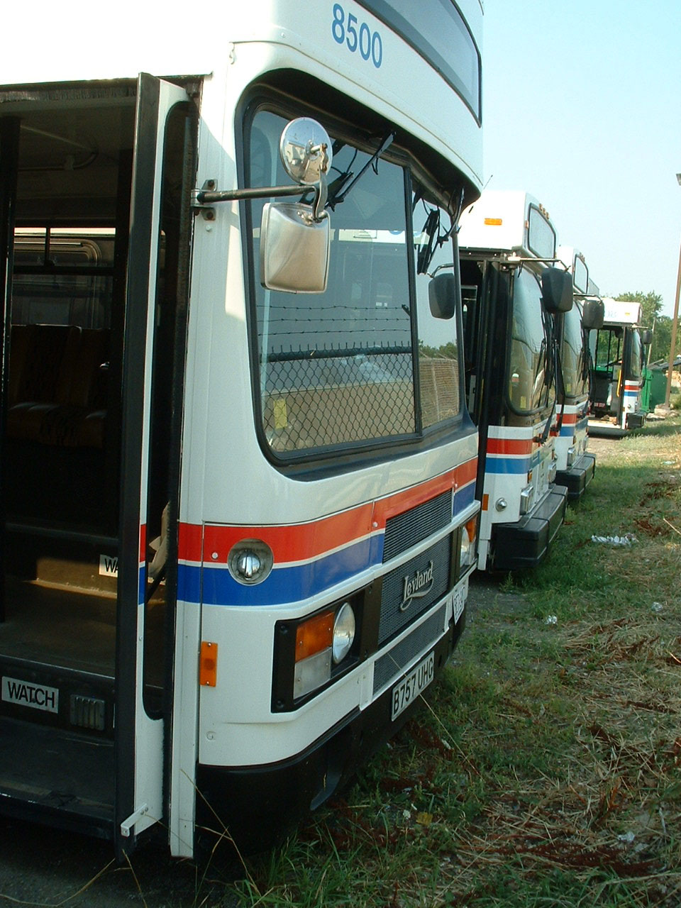 Parked in the depot yard amongst other laid up buses it was not possible to get a decent picture of Olympian 8500, but as this view shows, it had dual door bodywork.
