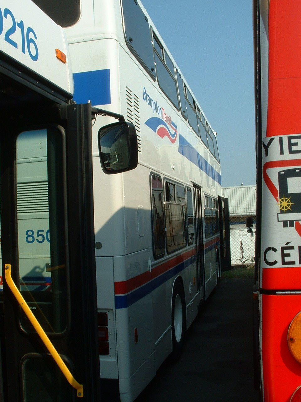 Probably long before Go Transit even thought about buying Alexander Dennis Enviro500 doubledeckers, Brampton acquired this very English ECW bodied Leyland Olympian. It was new in 1985 to Gray Line in Victoria, BC, for tourist work, joining many secondhand British buses so deployed. Brampton acquired it four years later, though it is not known why it fell out of favour in Victoria. Certainly when seen in 2007 it was out of use in Brampton and had been used latterly as a novelty feature taking part in parades and similar community events. In 2012 it joined the many Routemasters with Ambassatours owned Double Deck Tours at Niagara Tours. By 2016 it had been rendered topless on passing to Bus & Boat Tours in Toronto.