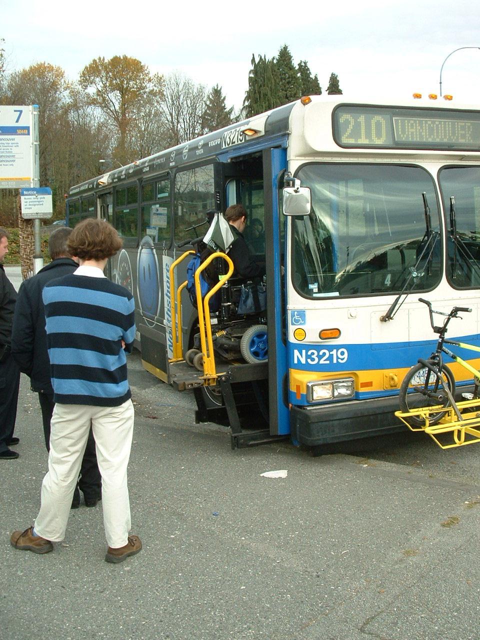 This wheel chair bound passenger descends from Flyer N3255 at Phibbs.