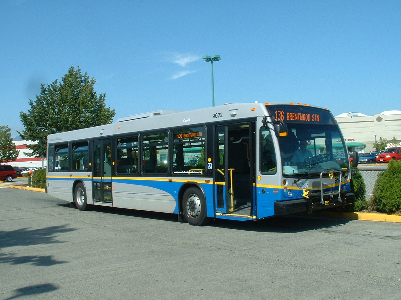 A nearside view of 9622 on layover at Brentwood Station at the same day in August 2007, also minus a depot code, a likely indication of how new to service the Novabus were at the time. They were a departure for Coast Mountain Bus the model having been around since 1995. A predecessor to the Novabus was the MCI Classic, a model just about retired from the fleet in 2007. |