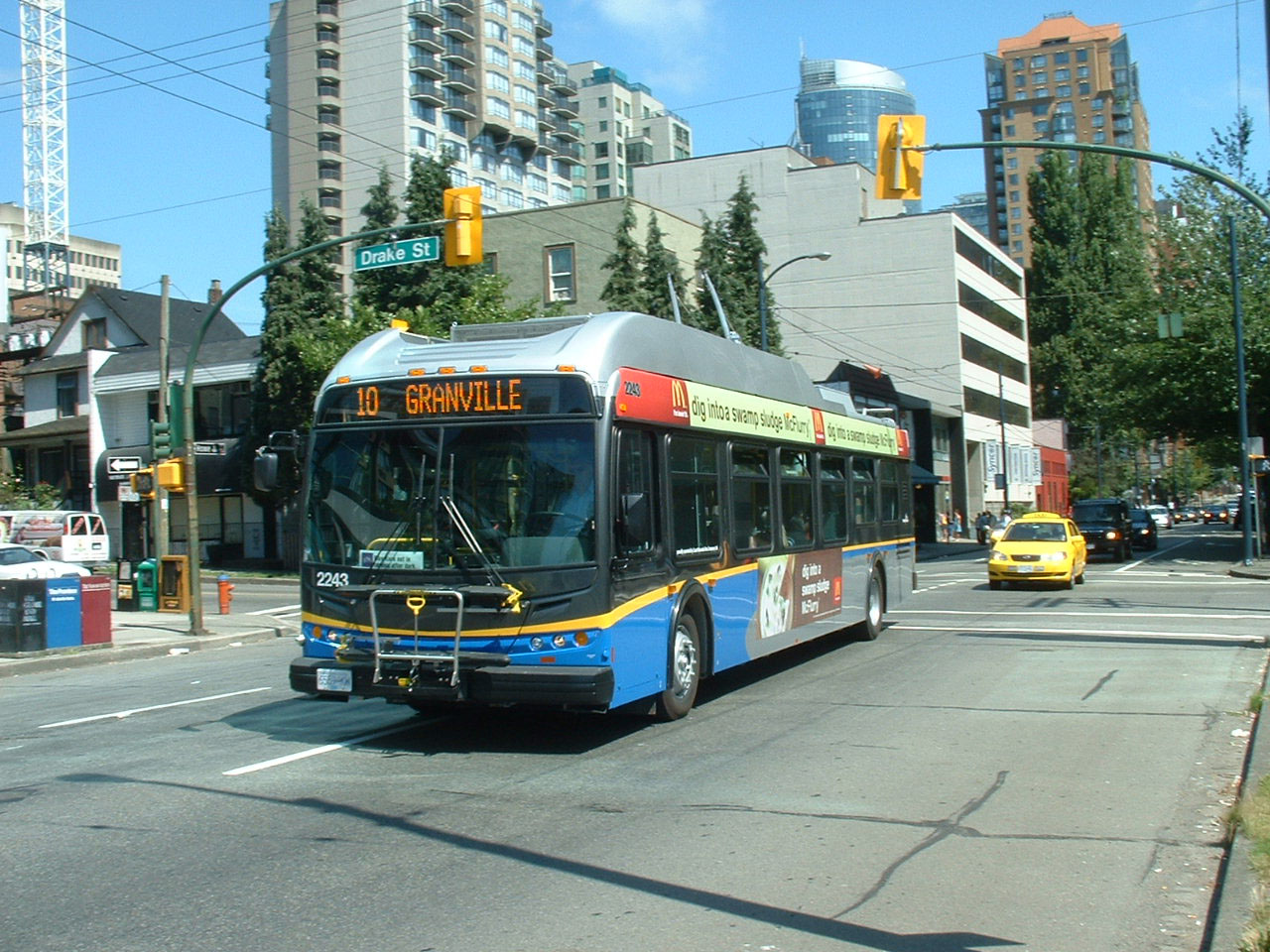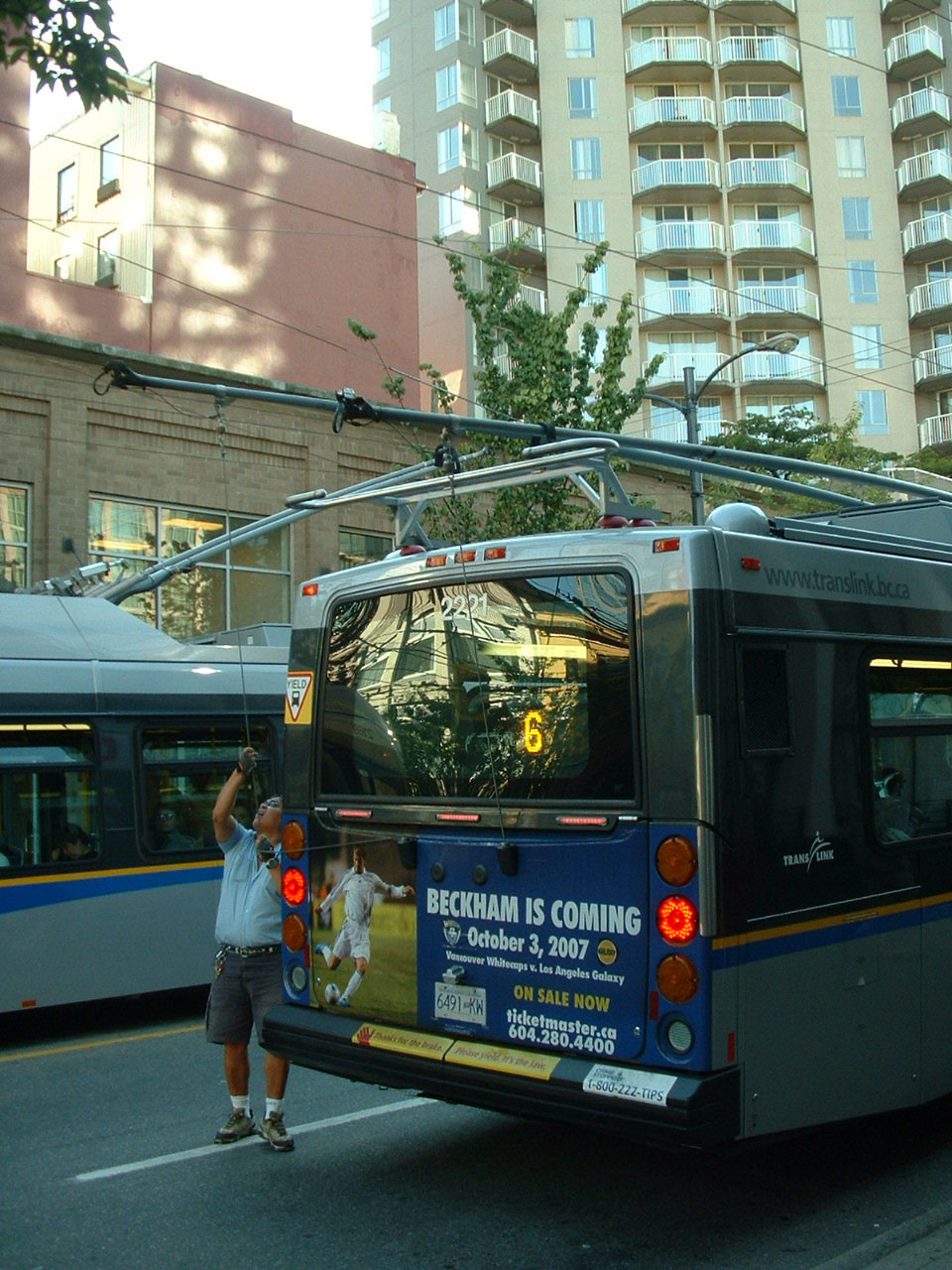 New Flyer 2221 had a dewiring mishap at the junction of Davie and Granville one day in August 2007.